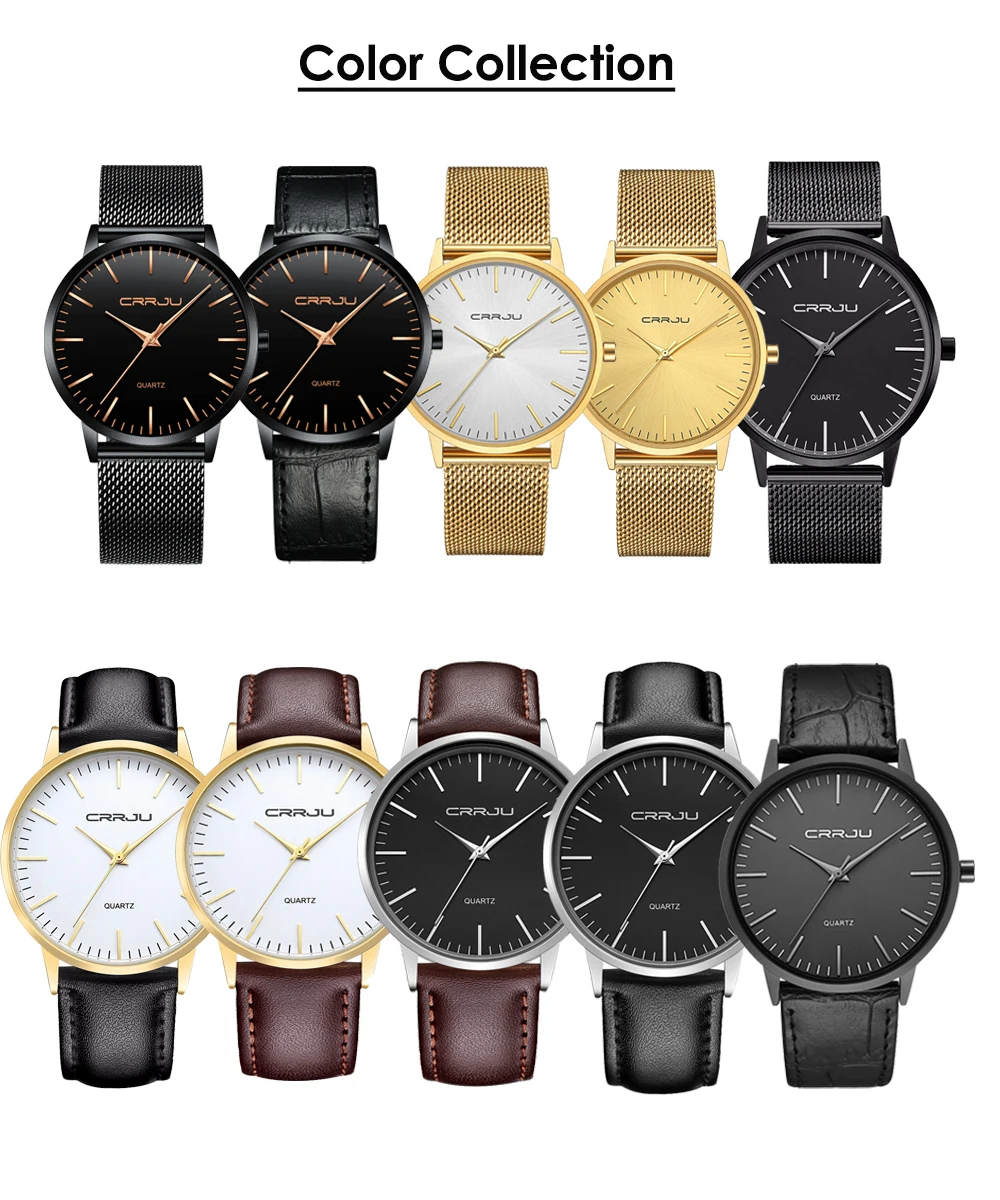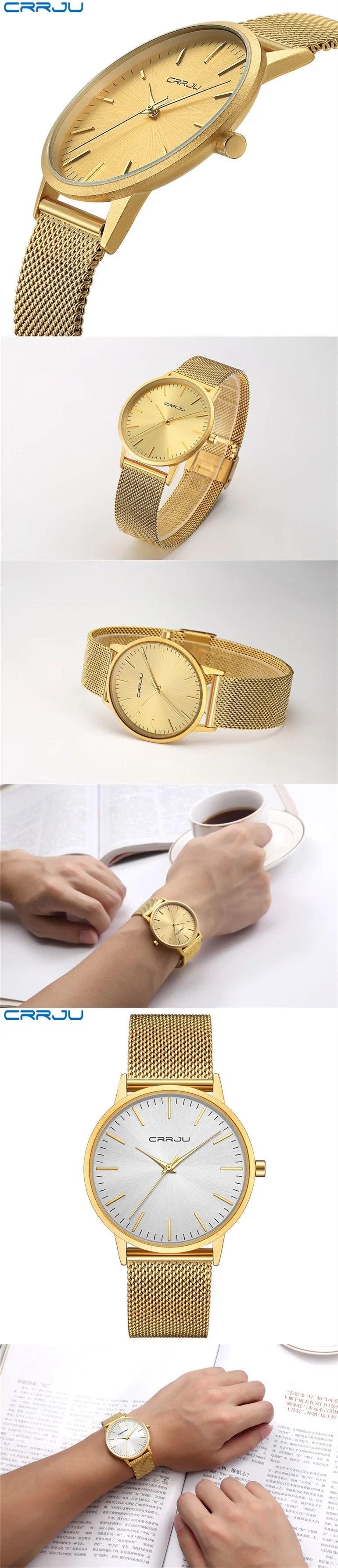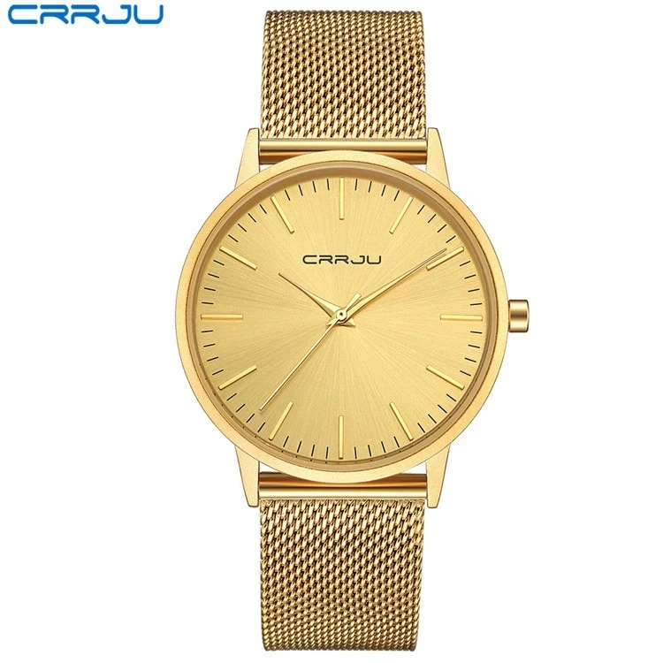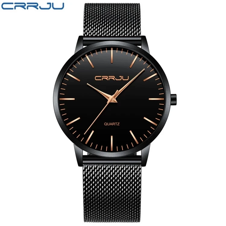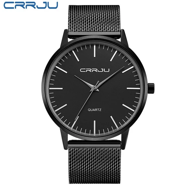 CRRJU 2117 часы хит продаж персонализированные Мужские кварцевые часы из нержавеющей стали с сеткой водонепроницаемые ультра тонкие простые повседневные часы