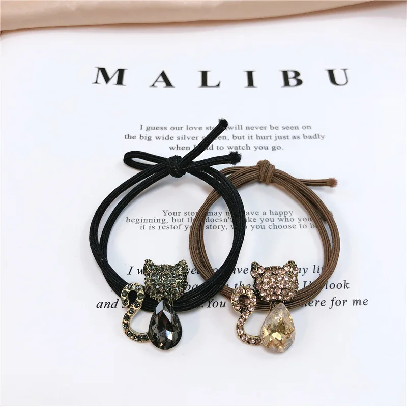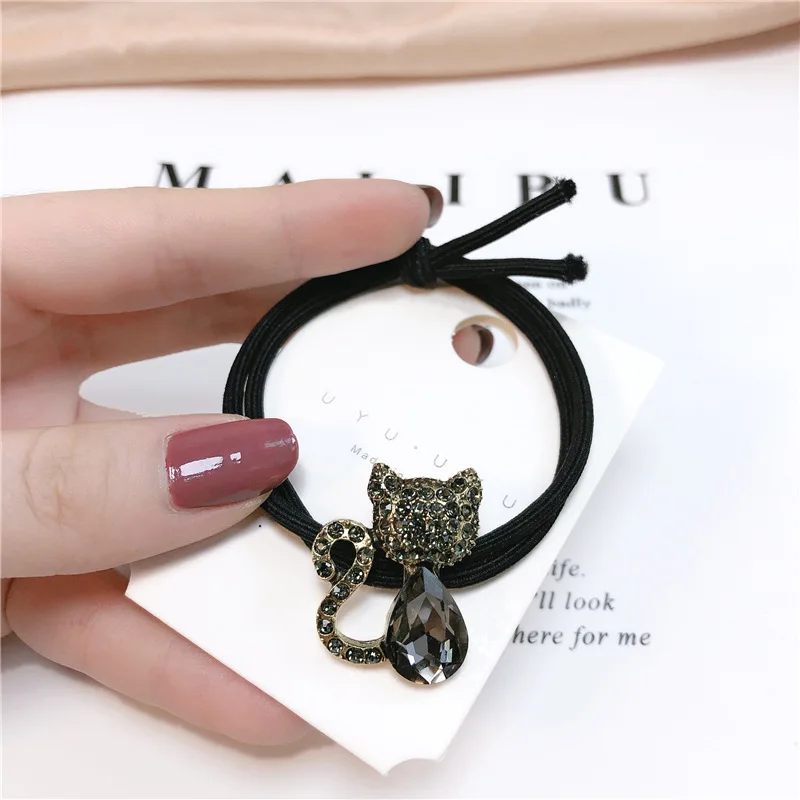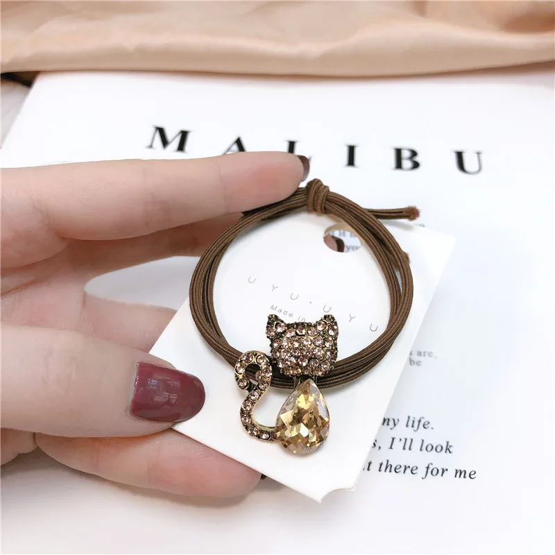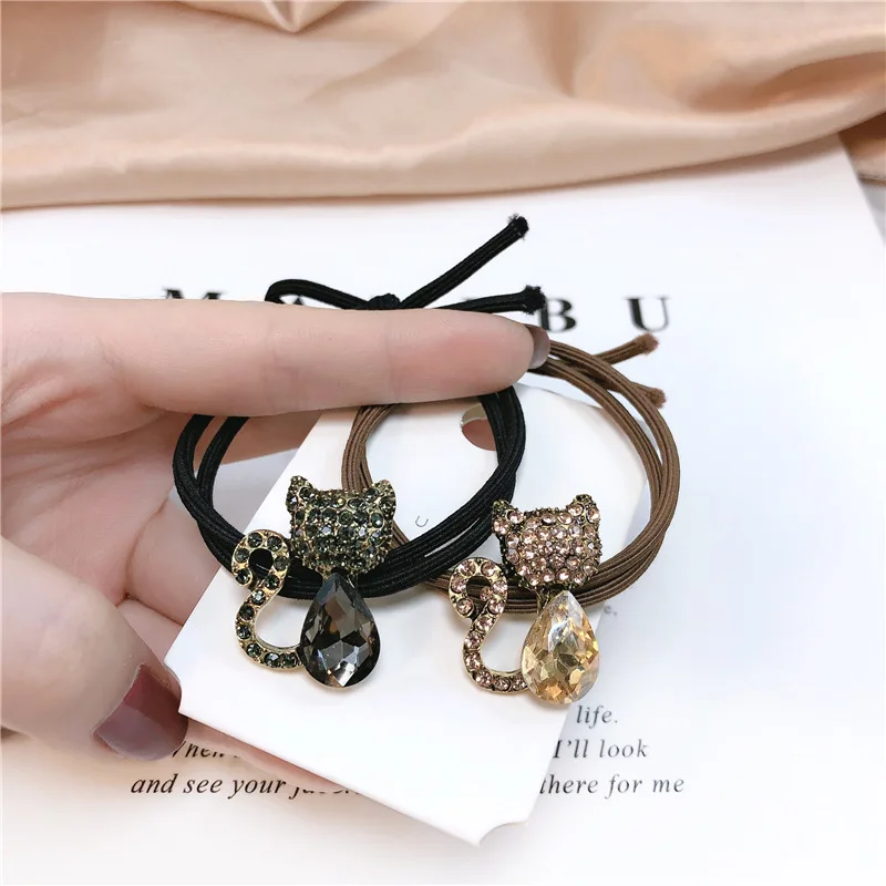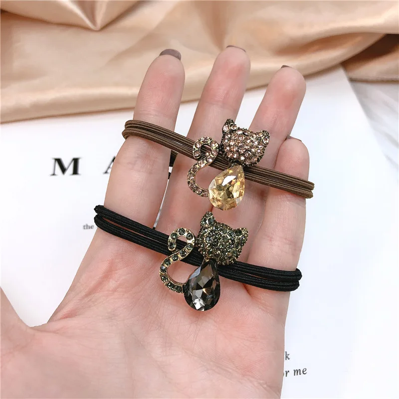 Женская резинка для волос, с кристаллами, в виде кошки, элегантная, изысканный шнур, красная, с сеткой для девочки