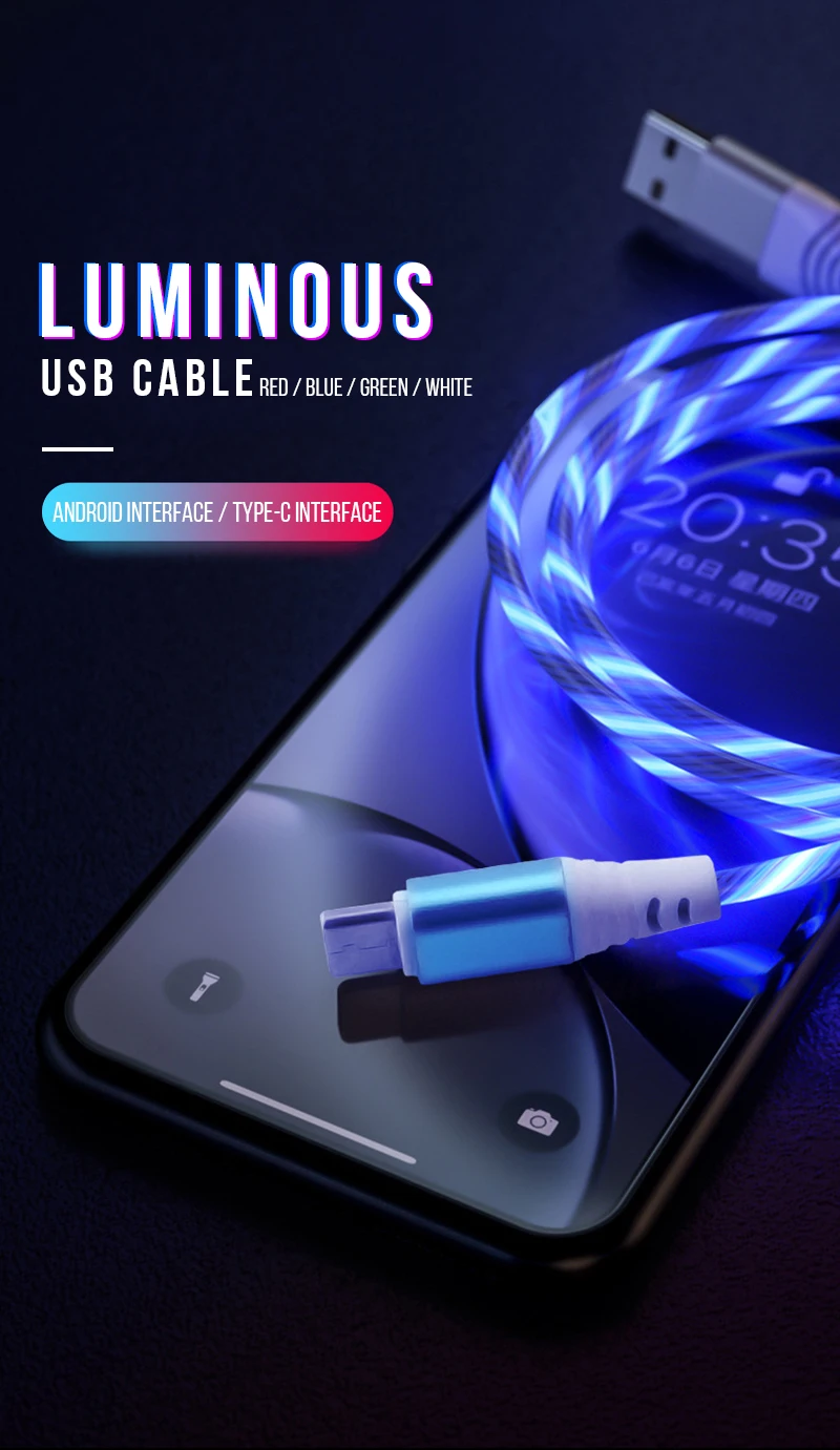 Кабель USB Type-C со светодиодной подсветкой для быстрой зарядки и ...