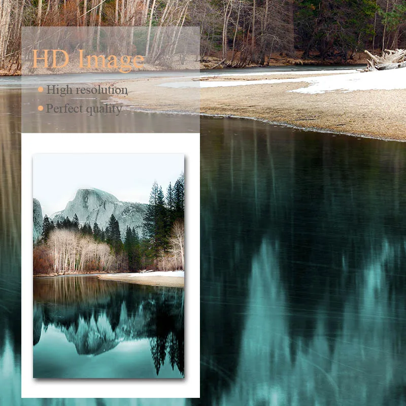 Скандинавская природа зимний пейзаж постер печать гор Лес холст жив...