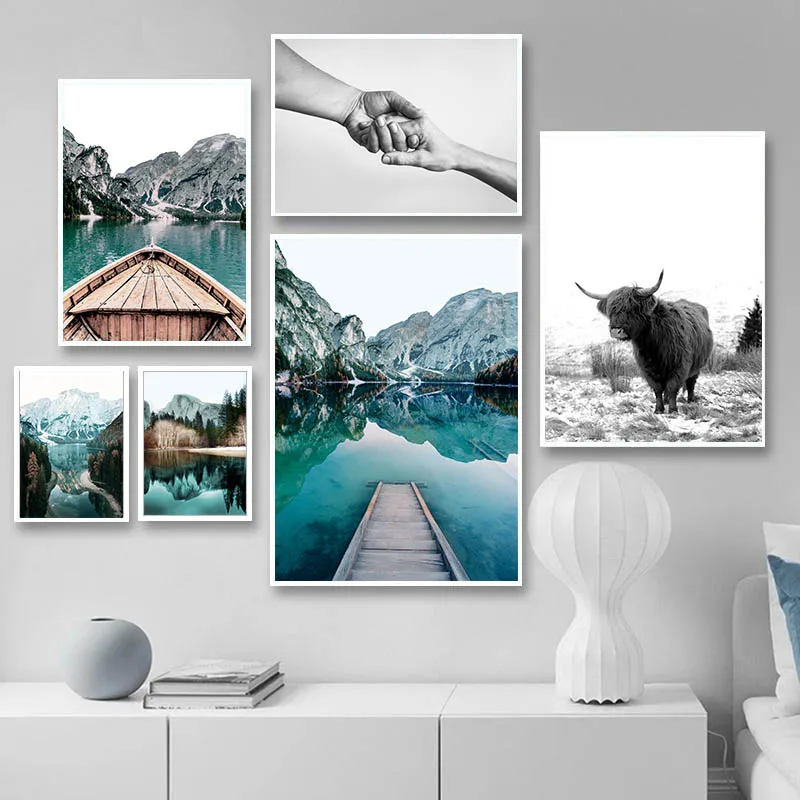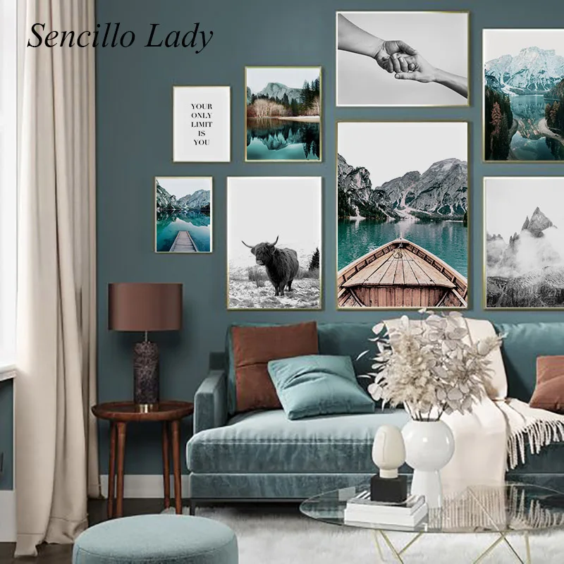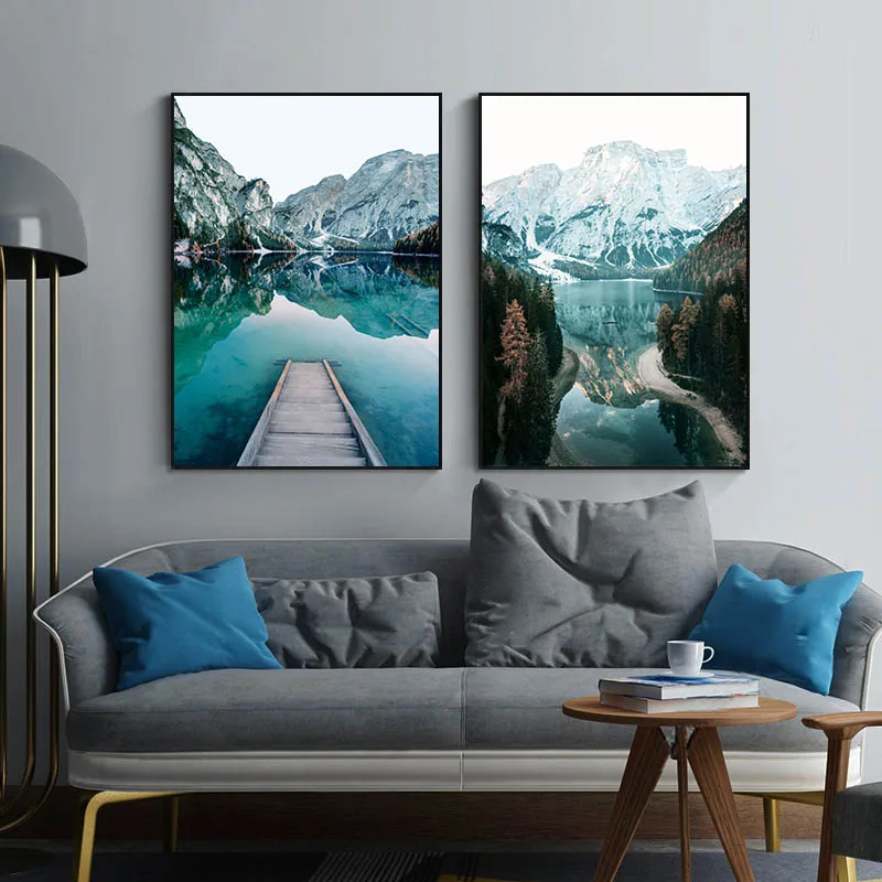 Скандинавская картина, пейзаж из путешествия холст, картина горная ...