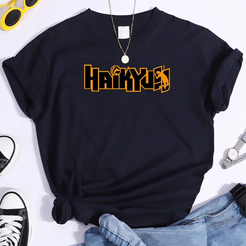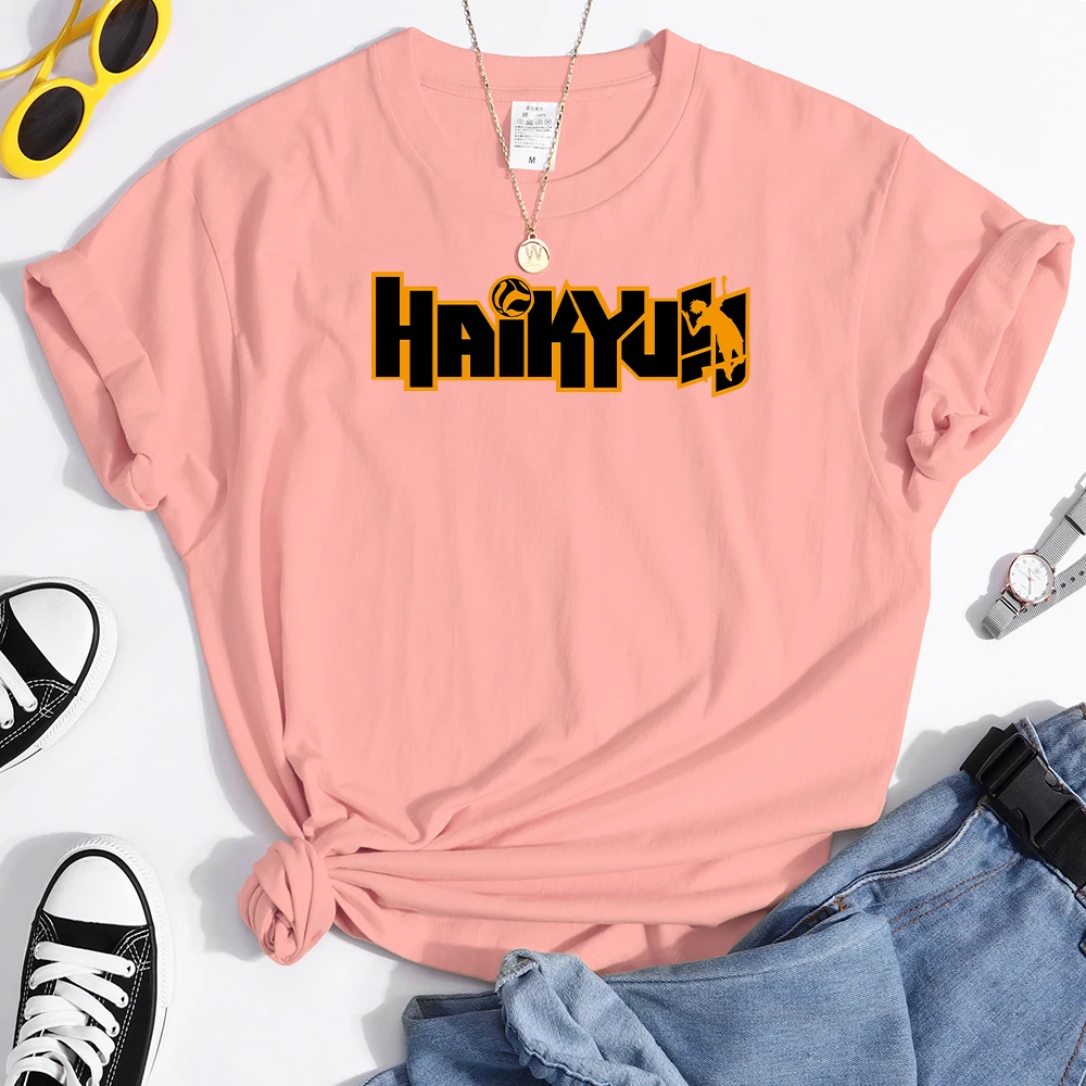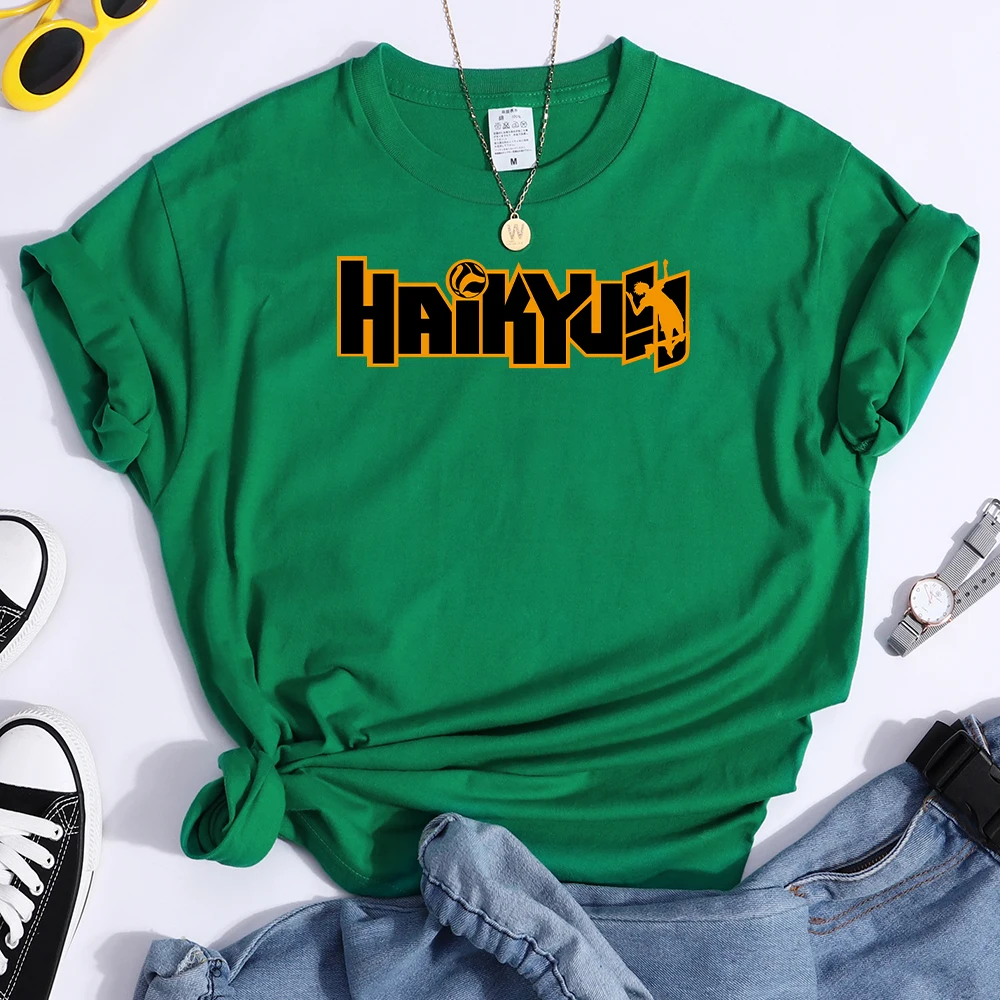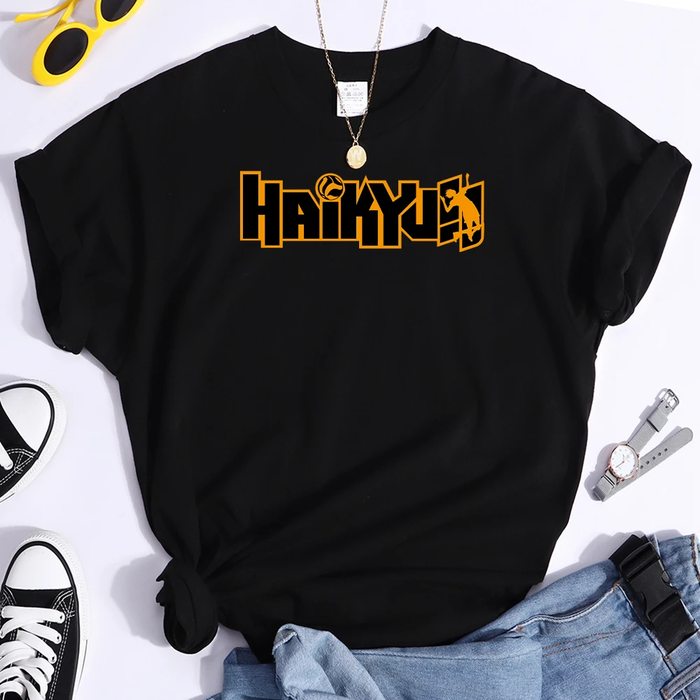 Футболка женская В Стиле Аниме Haikyuu, модная футболка оверсайз с винтажным принтом, уличная одежда с круглым вырезом и коротким рукавом, топы для женщин