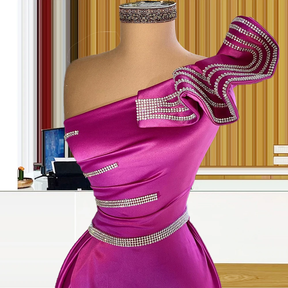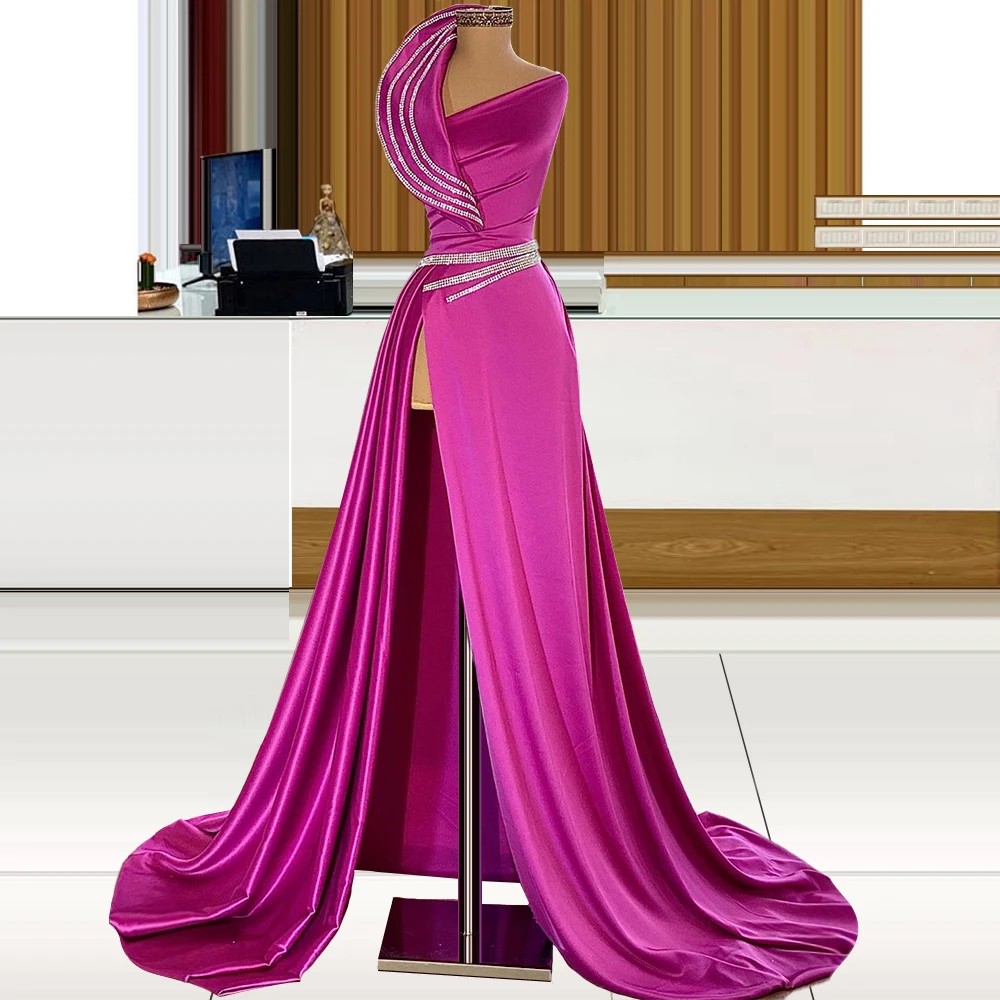 Фуксия Длинные атласные платья для выпускного вечера пол Длина Стразы Платье vestido de fiesta de boda; Платье трапециевидной формы без рукавов, sukienki koktajlowe