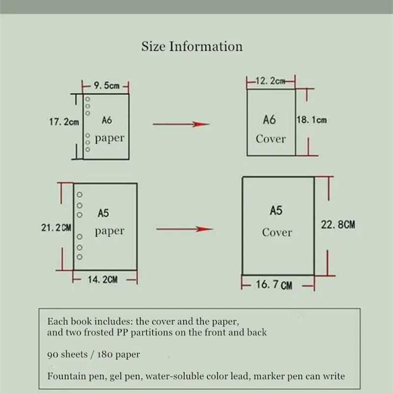 Внутренние листы: 90 листов/180 бумаги