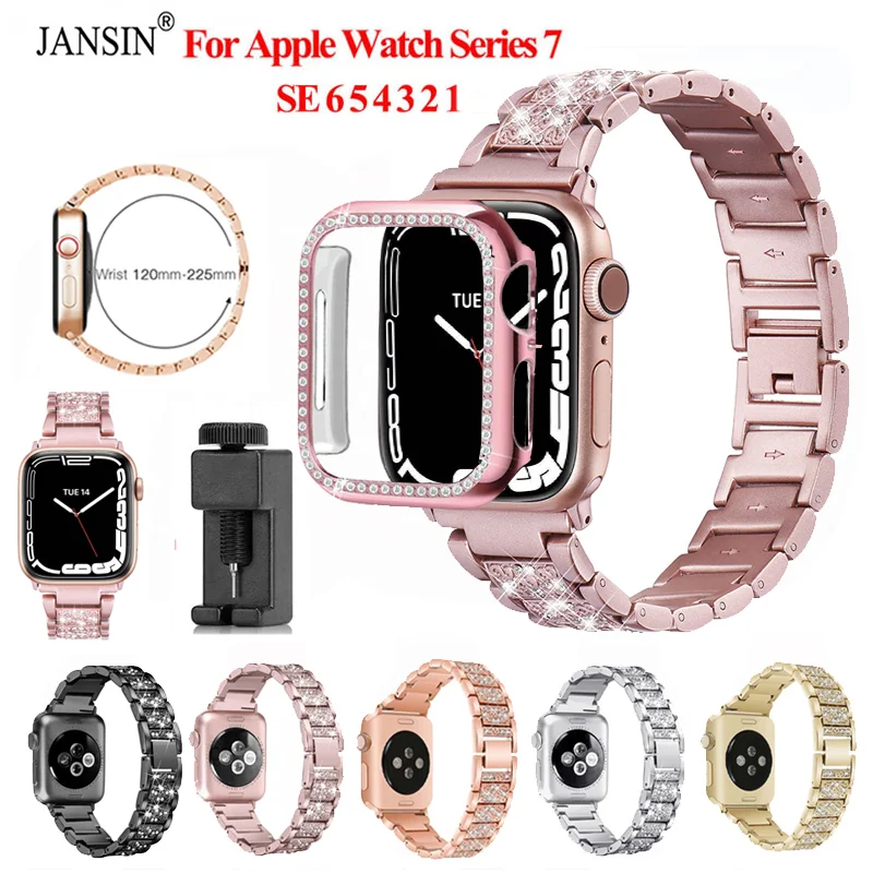 Браслет и чехол для Apple Watch 7 41 мм 45 мм, женский браслет для iWatch Series SE 6 5 4 3 2 1, 38 мм 40 мм 42 мм 44 мм