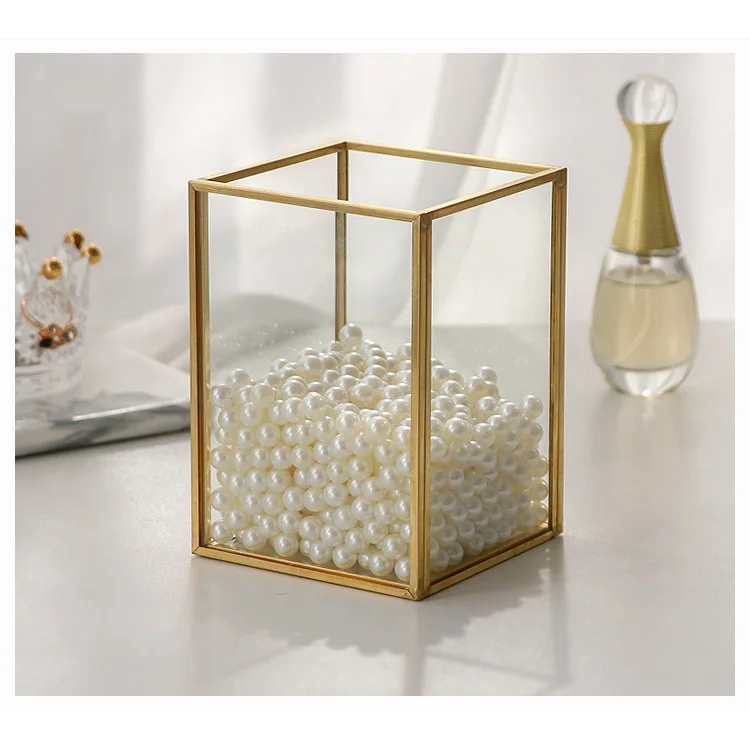 Золотая коробка для хранения косметики, зеркальная отделка, стеклян...