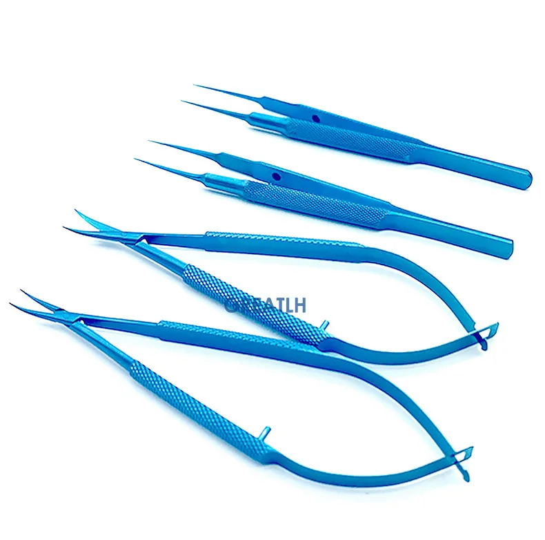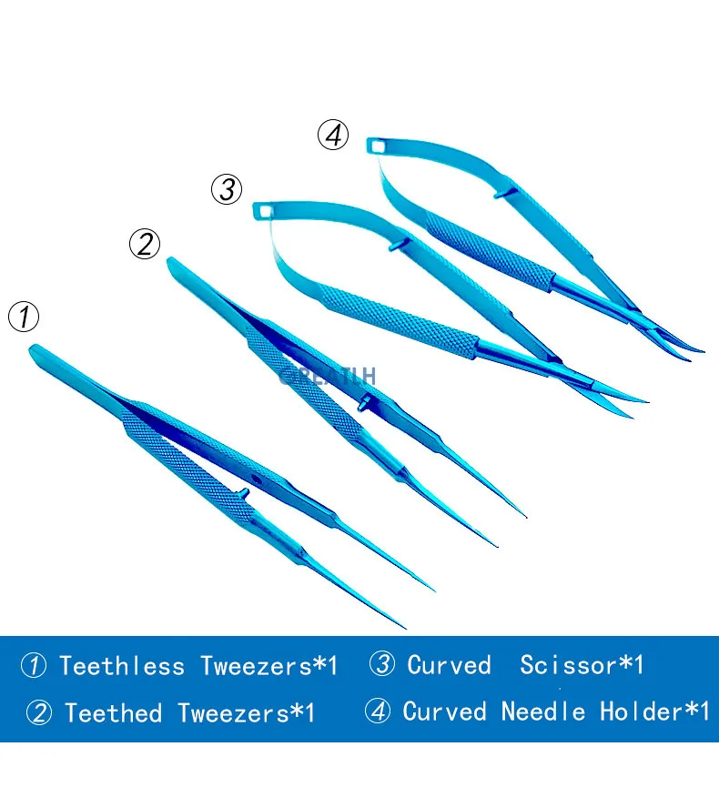 Набор титановых офтальмологических инструментов, 4 шт., щипцы, Иглодержатели, ножницы с силиконовым лотком для стерилизации