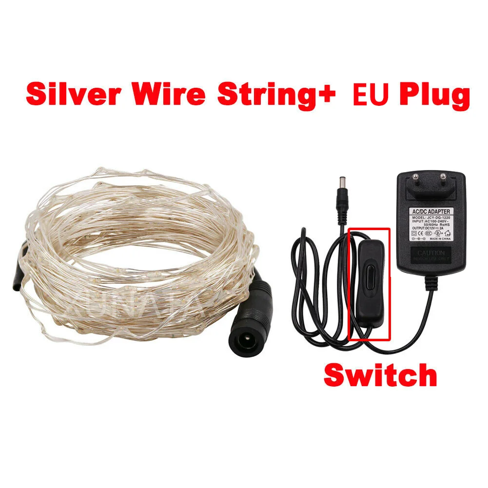 12 В постоянного тока, светодиодная гирлянда, 30 м, 20 м, 10 м, серебристая медная проволока, водонепроницаемая гирлянда, гирлянда для дома, украшение для рождественской вечеринки