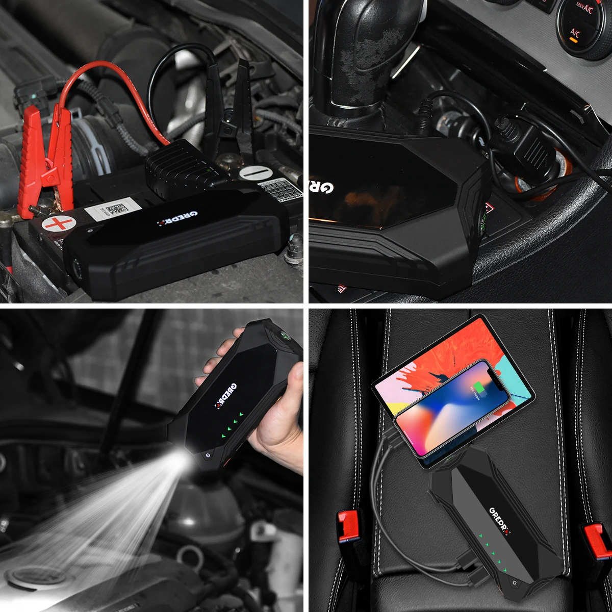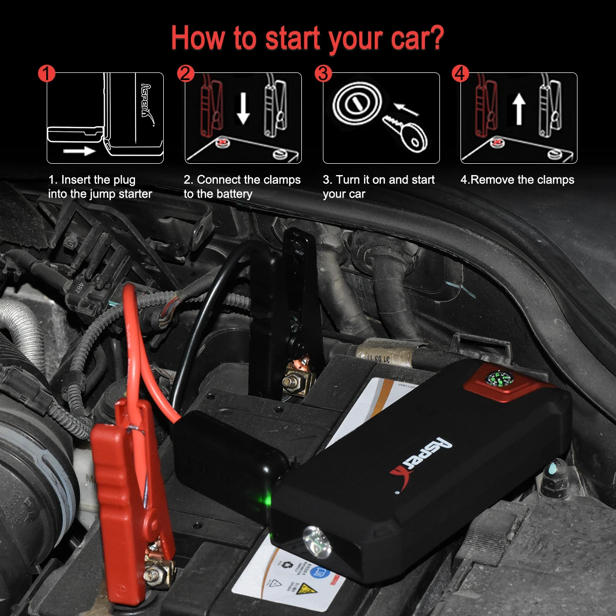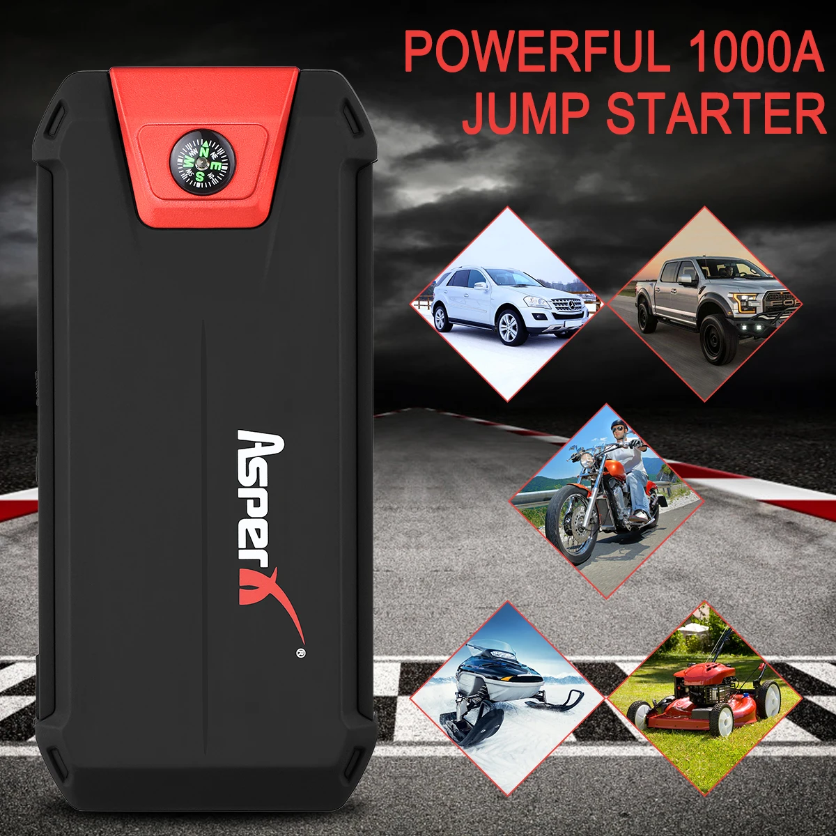 Автомобильный стартер, автомобильный внешний аккумулятор, пусковое устройство 1000 А, автомобильный бустер 12 В, аварийная батарея для автомобиля, автомобильный бустер, мощность аккумулятора, яркая светодиодный ная подсветка