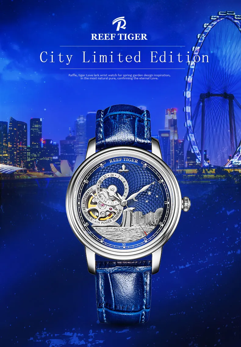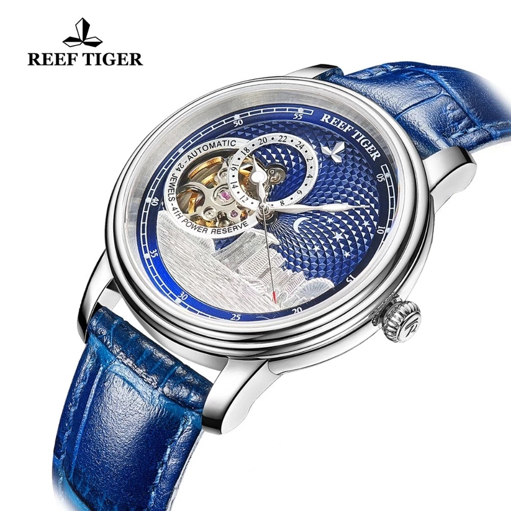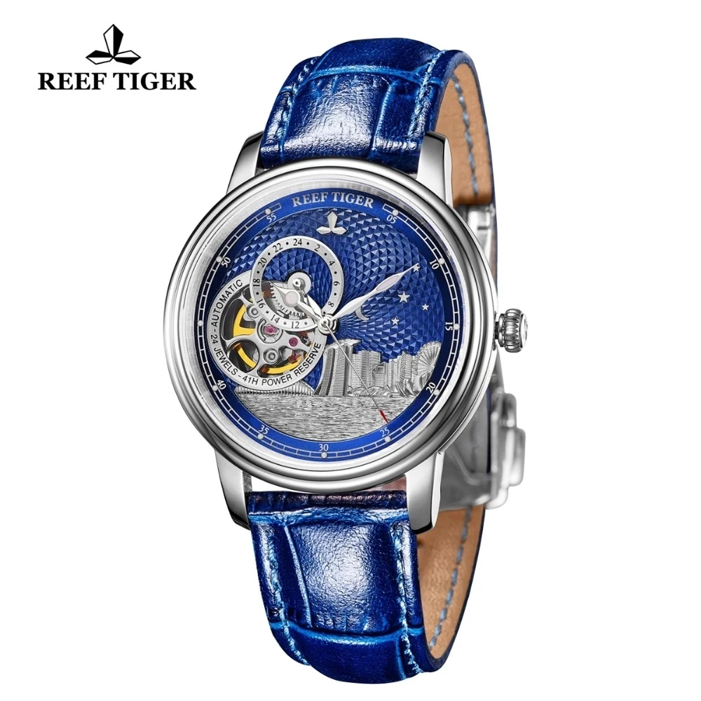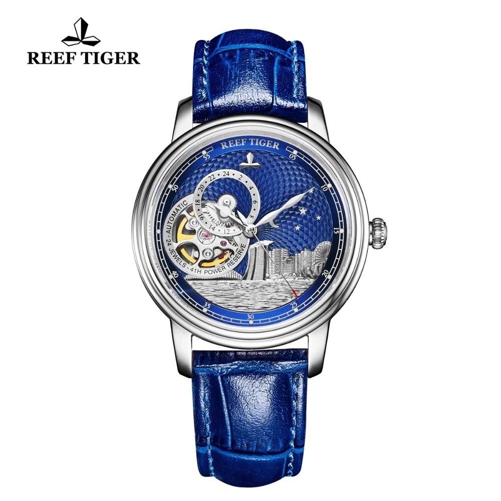 Синие автоматические часы с турбийоном Reef TigerRT, роскошные модн...