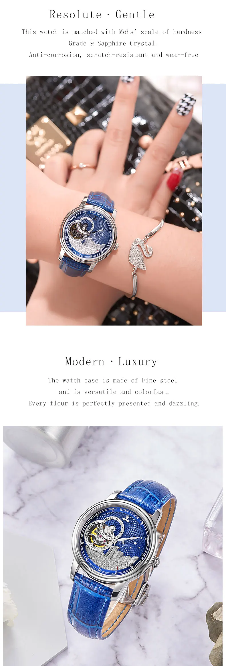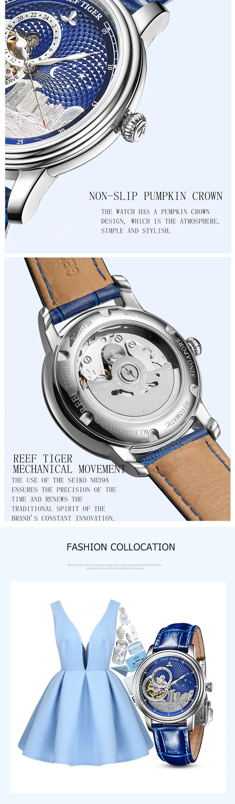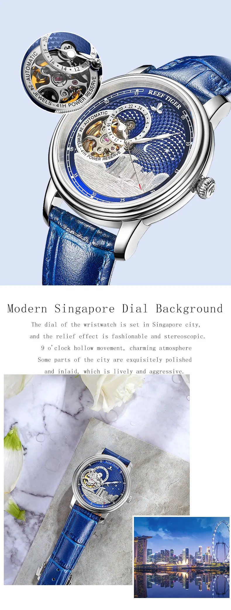 Синие автоматические часы с турбийоном Reef TigerRT, роскошные модн...