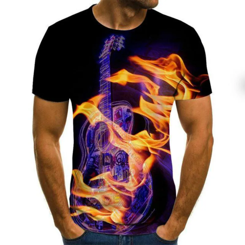 2021 новая футболка мужская музыка футболка 3d гитара футболка рубашка с принтом в готическом стиле с рисунками аниме Большой куш, одежда с коротким рукавом Футболка XS-6XL
