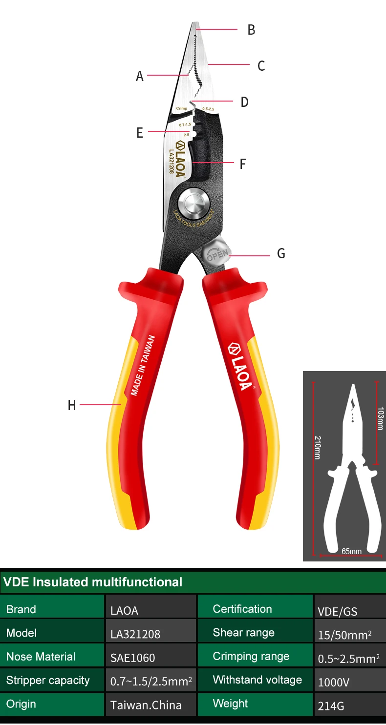 Многофункциональные плоскогубцы LAOA VDE, плоскогубцы для резки изолированных проводов высокого напряжения, 1000 в