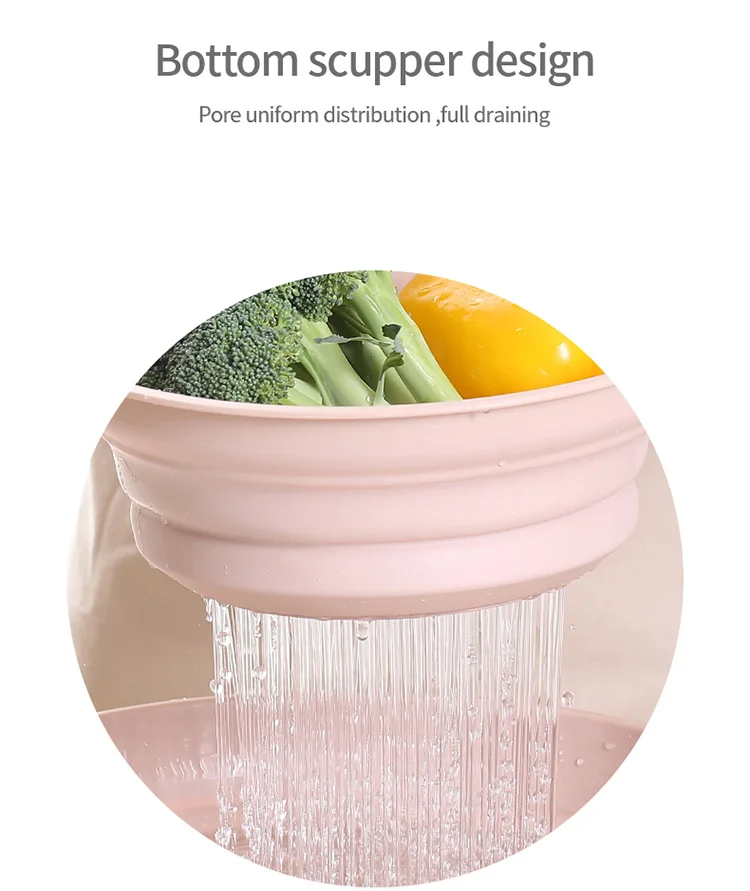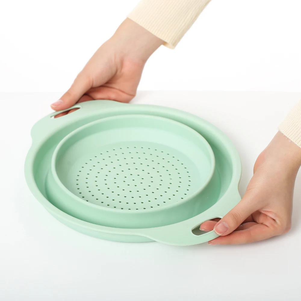 ♥Предпочтительный материал PP + TPR, доступный от-20 ℃ до 90 ℃ ♥Масштабируемая складная конструкция, проста в использовании, может усаживаться до 2,4 см ♥Полая конструкция, дно покрыто ровными сливными отверстиями, плавный и тщательный слив