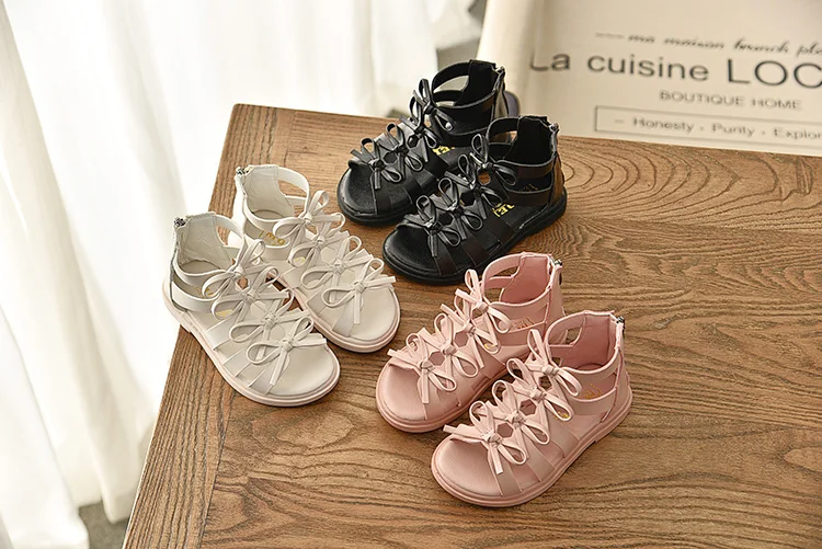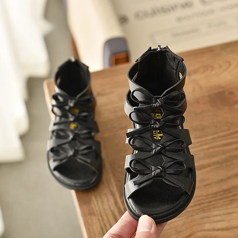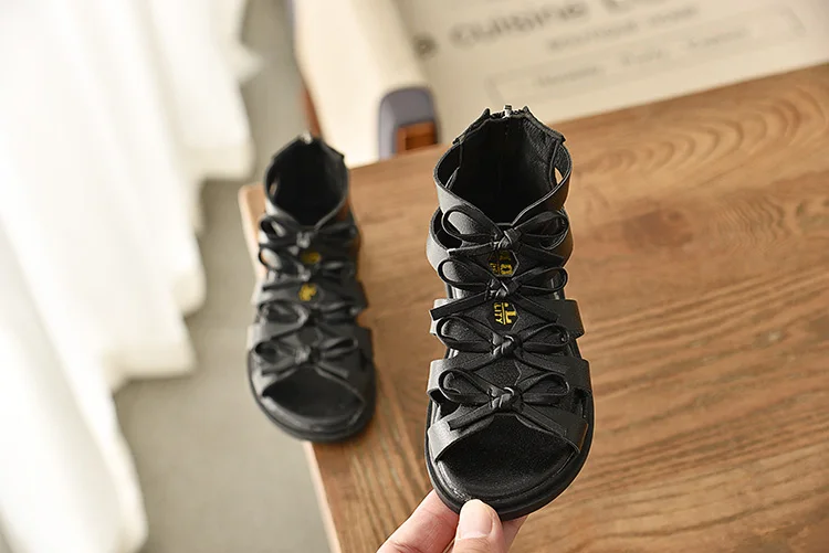 Сандалии-гладиаторы для маленьких девочек, ботинки из замши, с высоким берцем, модные римские сандалии для начинающих ходить детей, коричневые, черные, лето