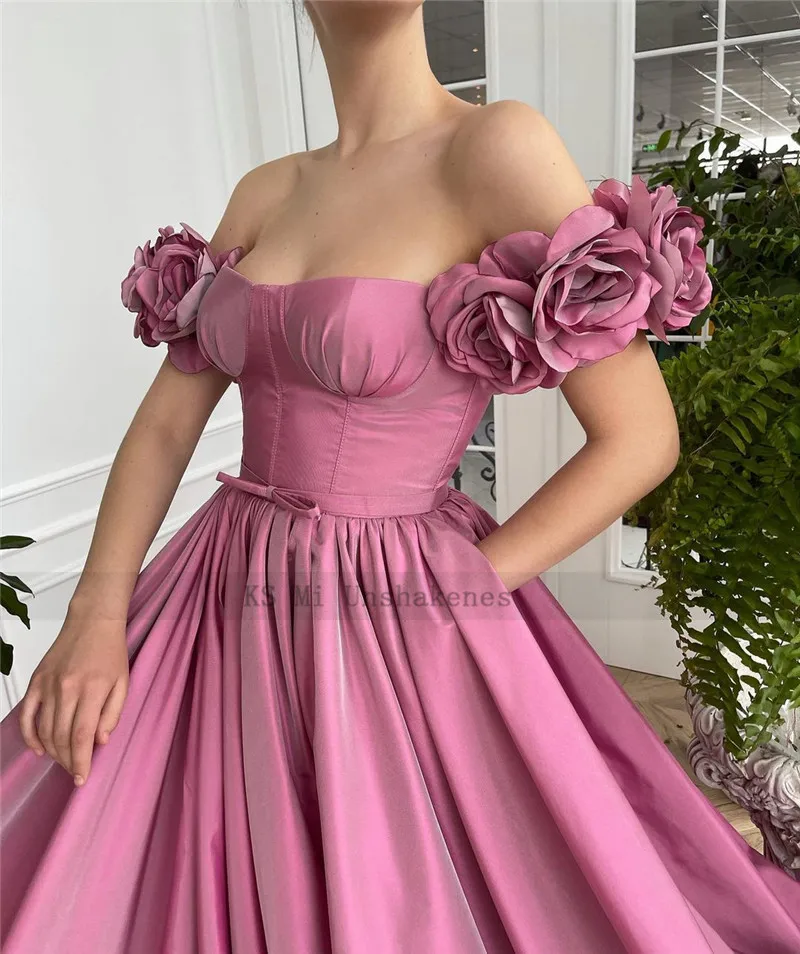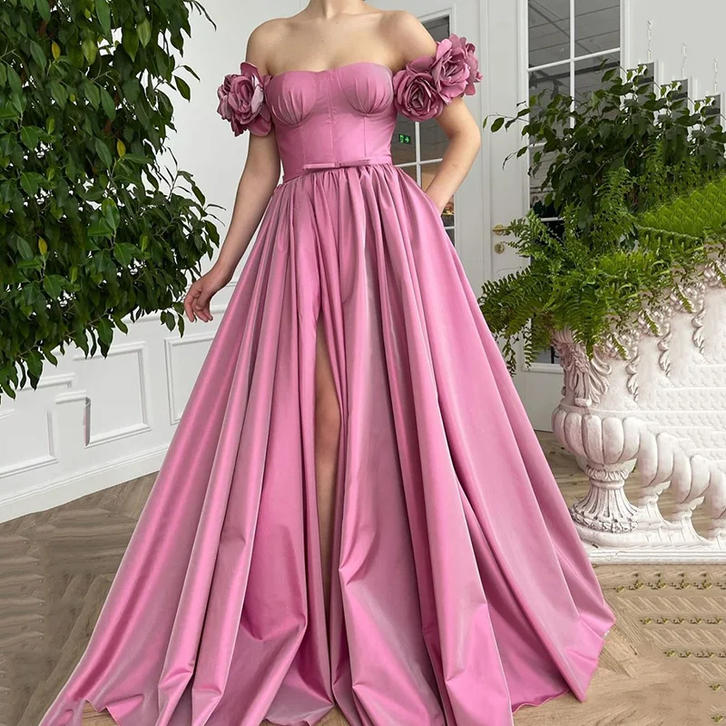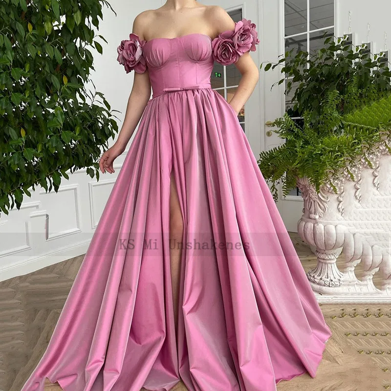 Длинные розовые вечерние платья 2021, Тафта без бретелек, дешевое пышное платье для выпускного вечера, вечернее платье с карманами и разрезом сбоку, на заказ