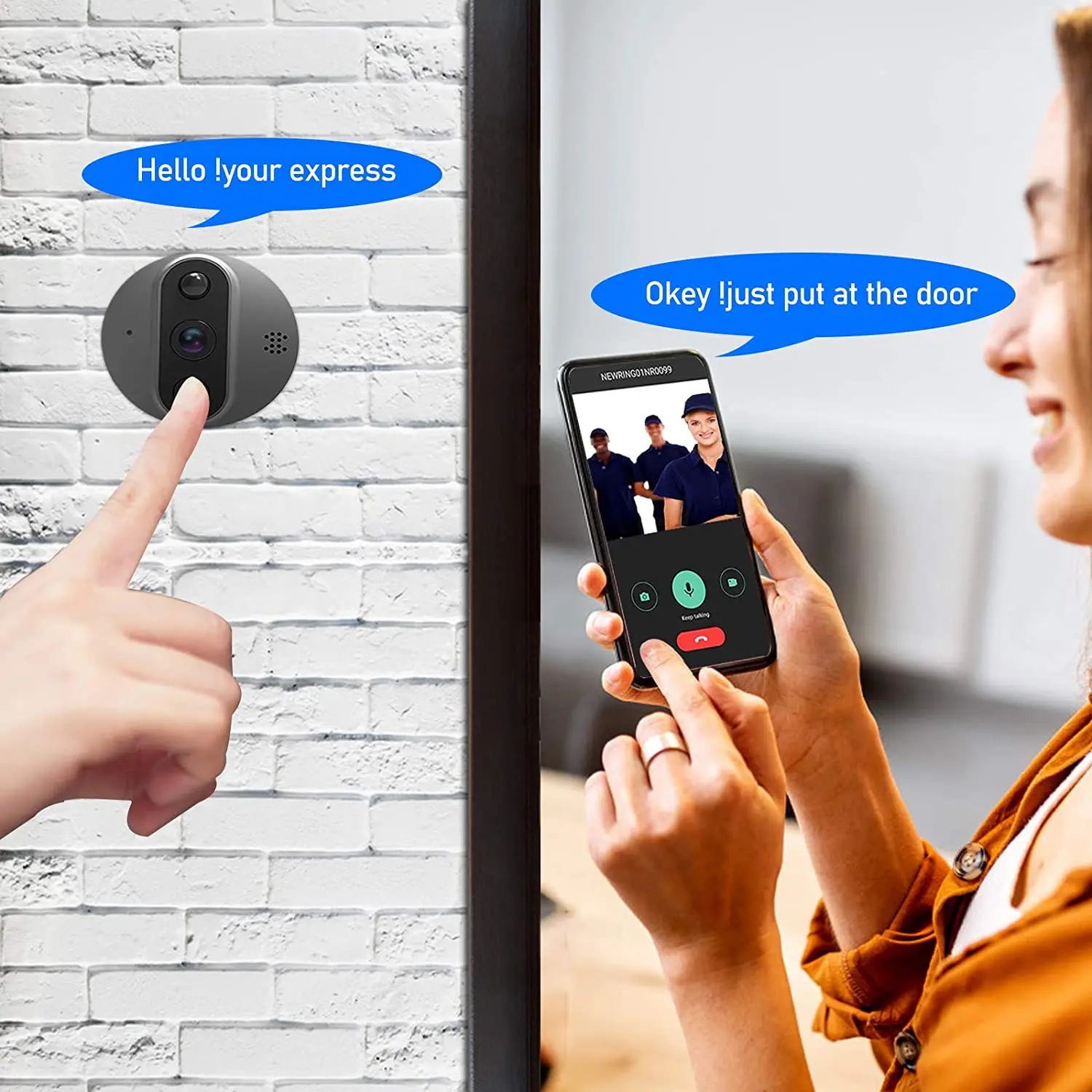 Двусторонний домофонМониторинг внешней среды в любое время с вашим телефоном. Когда курьер доставлен к двери, он может позвонить в дверной звонок, чтобы поговорить с вами, и вы можете говорить удаленно на ваш мобильный телефон.