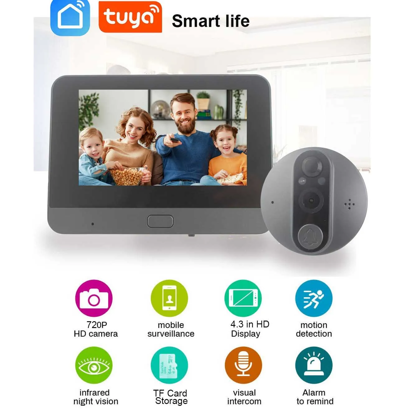 Серия Tuya Smart, монитор в любое время и в любом местеПоддержка удаленного мониторинга мобильный телефон: домофон, просмотр посетителей, видеозвонки, снимки, запись и т. Д.