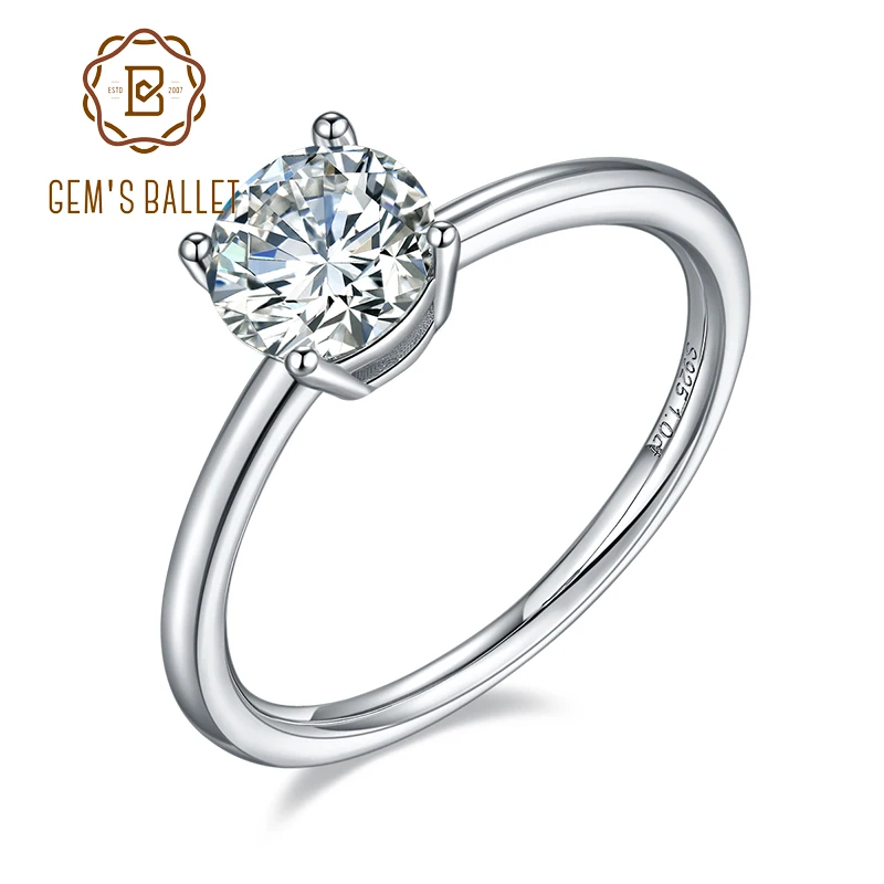 Женское балетное кольцо GEM'S, классическое круглое моиссанитовое к...