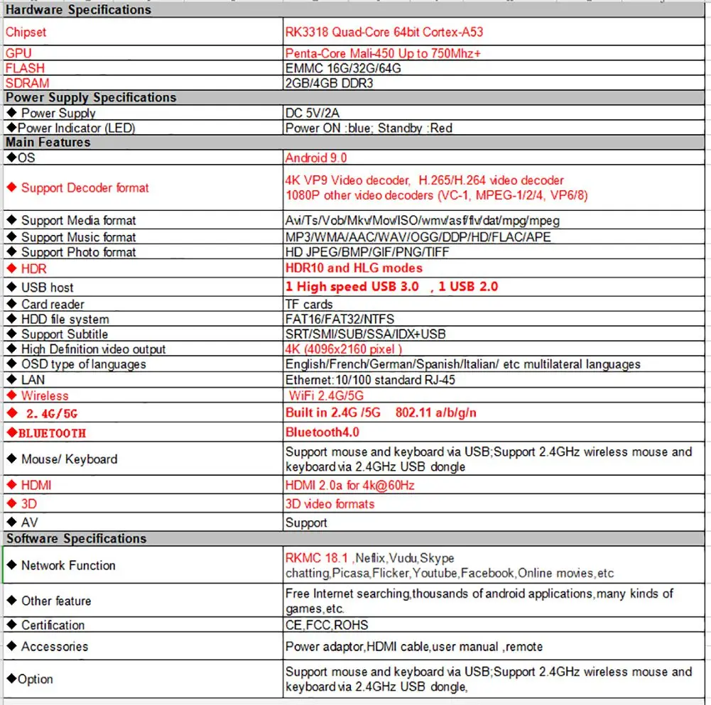 ТВ-приставка H96 Max является самым высоким профилем на рынке, работающим от новейшей системы Android 9,0 и четырехъядерным процессором RK3318 64 бит Cortex-A53 и процессором Penta Core Mali-450 до 750 МГц +