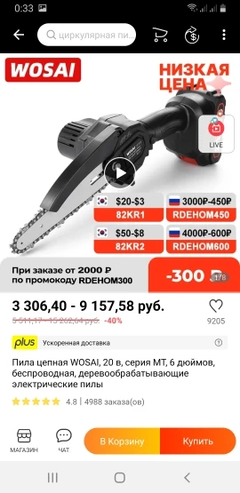Купила маме на дачу - бензопила тяжёлая, а ей эта для сучков в самый раз. Вроде все хорошо. Сфоткать смогу как там буду. Покупала с промокодом на скидку 1000 от 2000 руб. Промокоды смотрю на телеграмм канале KVPokupok, цену смотрите на фото - 1600. всем добра или добра на выбор :). Пила пришла за неделю, продавцу спасибо за такую оперативность.