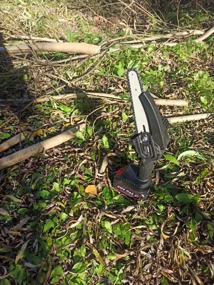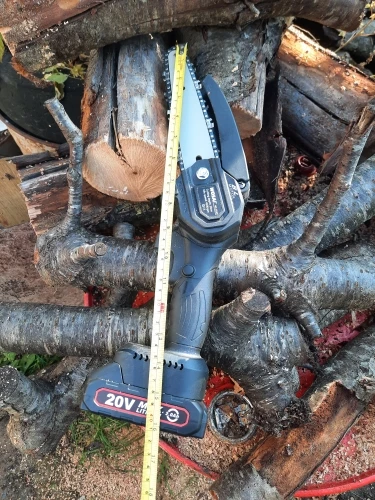 шикарнейшая пилка, я кайфую пользуясь такой, очень помогает на даче! занимает мало места, можно взять при выезде на природу. на 2м фото наклейка-пломба неудачно приклеена, этим местом пилка упирается а ствол дерева обычно. на 3м фото заросли фундука у забора, давно хотел их подрезать, но ручной пилкой муторно и долго, а этой играючи! на 4м фото дрова на шашлык, несколько лет эти стволы лежали, а тут раз-два и все порезано, не прошло и 5 минут. из минусов, у меня есть шуруповерт этой фирмы, купил тут ранее, батарейка от него не подходит к этой пилке. В общем это моё лучшее приобретение за осень 2021, а возможно и за весь год, ничего столько много положительных эмоций не доставило, как эта электропила!!! по моей рекомендации много знакомых купили такую пилку.