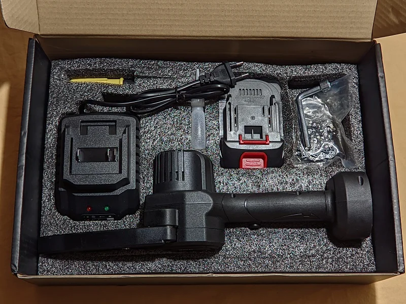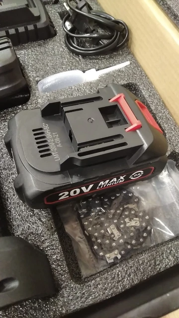 Очень противоречивые впечатления. С одной стороны что-то ожидать качественное за такую цену было бы опрометчиво. НО!!! оно пилит и пока не сгорело. При малейшем повышение нагрузки уходит в защиту. Аккумулятор без балансировки но с защитой. Пришел с зарядом 3,65 вольт на каждой банке. Маркировка на аккумуляторах 2000мАч. Проверять лень. Зарядное из вонючего пластика, заряжает до 21В ровно. Индикатор заряда показывает погоду на Марсе. Удивительно, но пилит этот девайс достаточно бодро, даже сухие полешки. Главное не давить и не перекашивать. Доставка быстрая, про доработки в каждом втором посте.