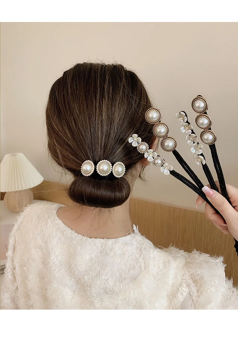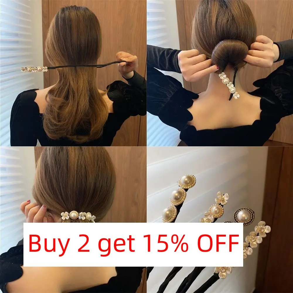 Перламутровое устройство для завивки волос булочка для создания элегантной задней части головного убора, стильная заколка для волос, супер сказочное жемчужное кольцо для волос
