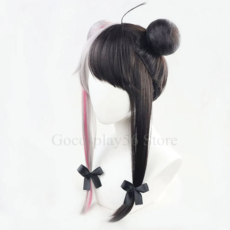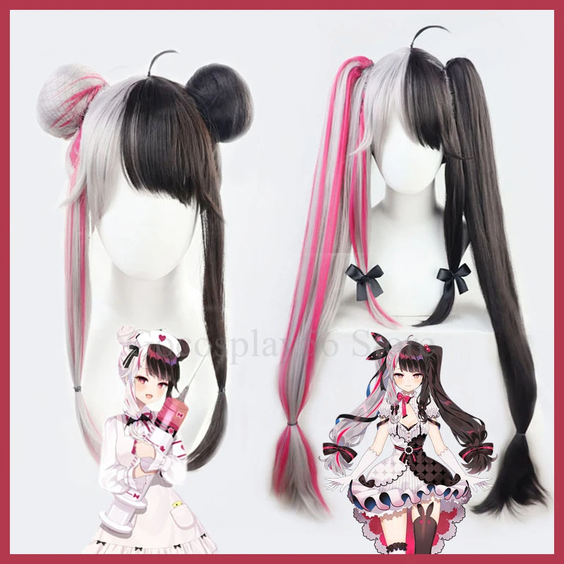 Парик VTuber Yorumi Rena розовый смешанный серый черный Youtuber Косплей Длинные прямые хвосты булочки синтетические волосы для девочек