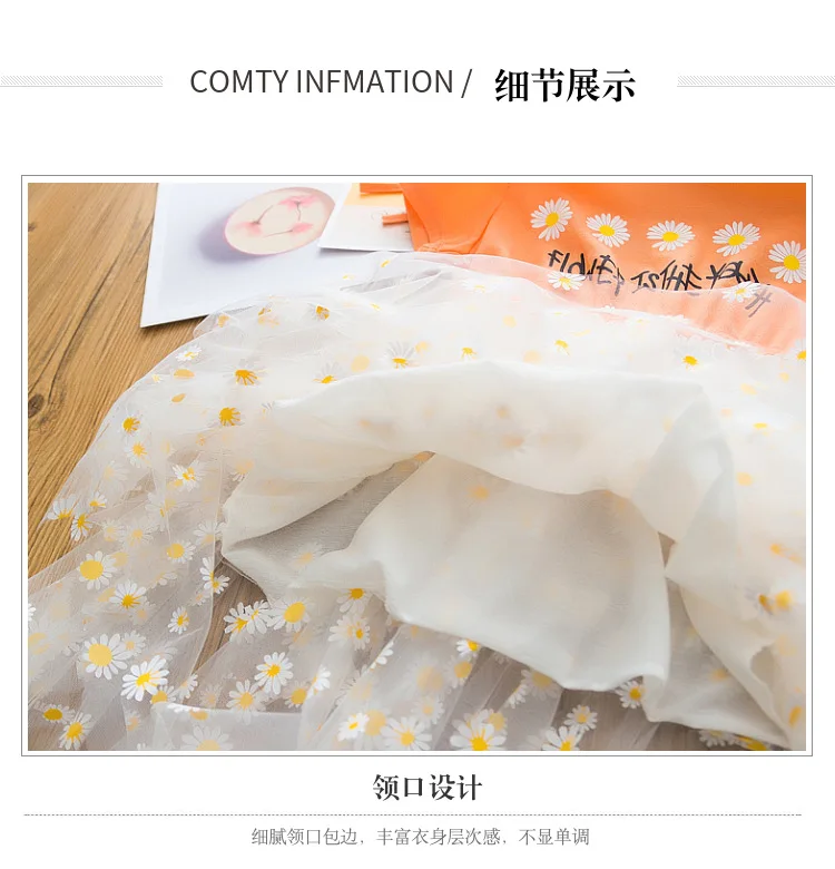 Новинка лета 2021, детское кружевное Сетчатое платье с цветочной вы...