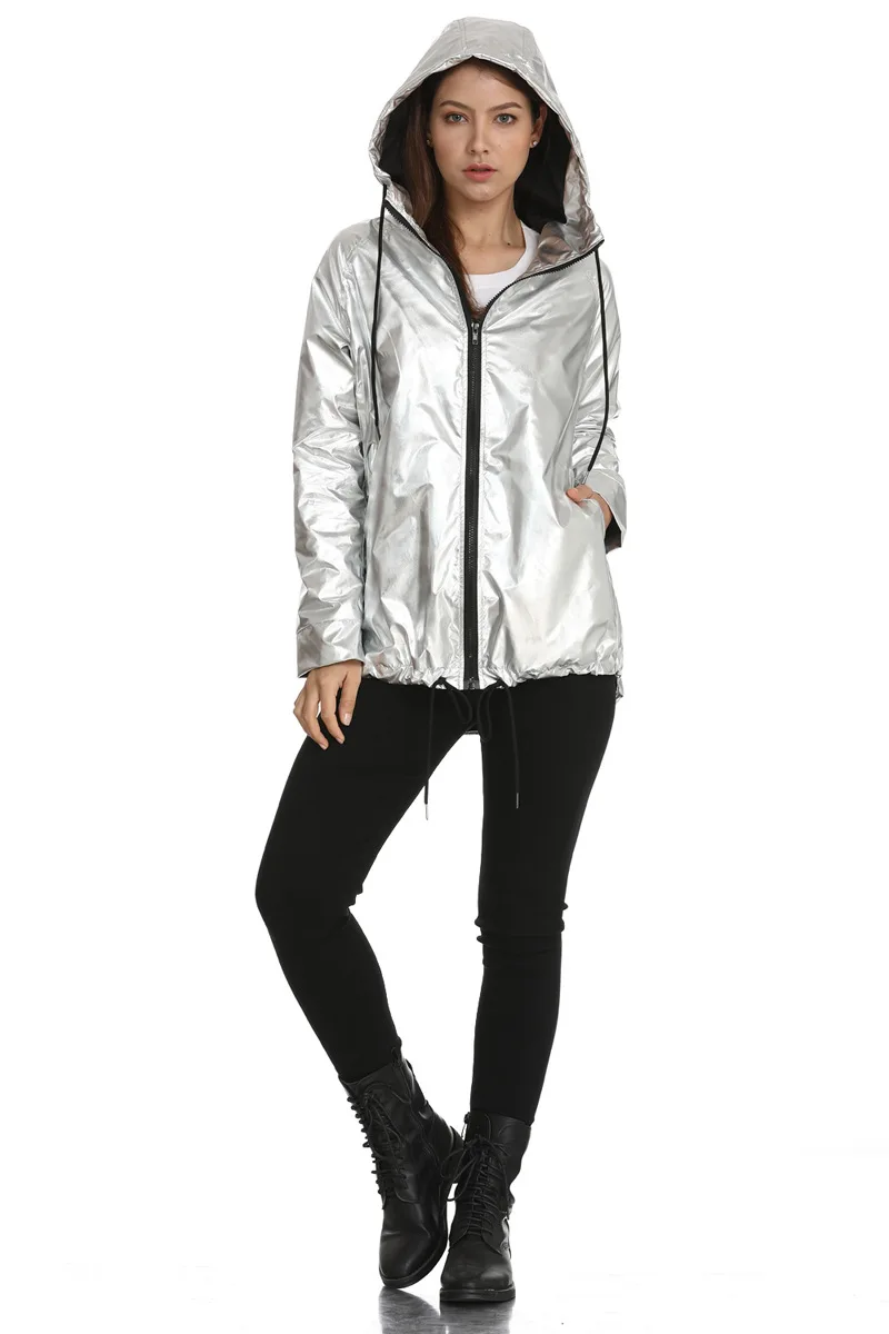 Женская Блестящая ветровка с капюшоном, куртка на молнии, золотиста...