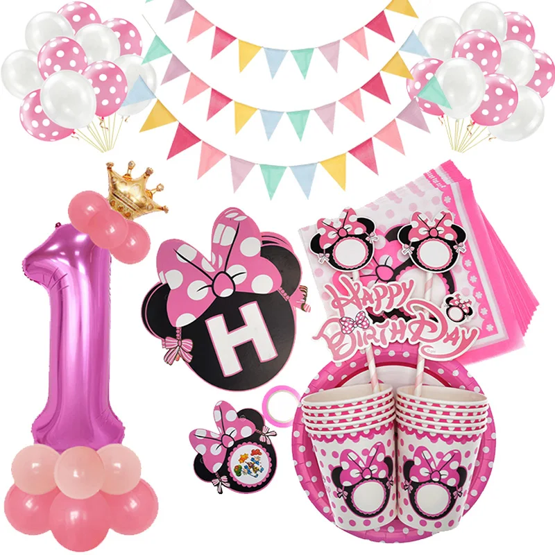 Розовый Минни мультфильм Девочка День рождения принадлежности мышь ...