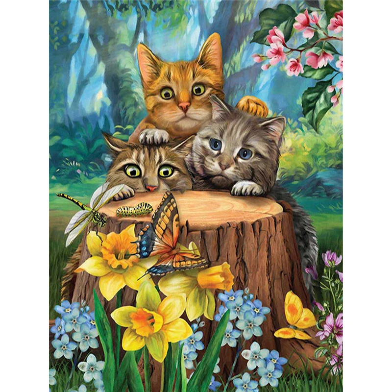KAMY YI DIY 5D квадратная Алмазная вышивка кошачьи часы Бабочка Ручная работа круглая инкрустация Стразы Вышивка крестиком пейзаж украшение для дома