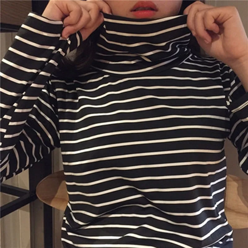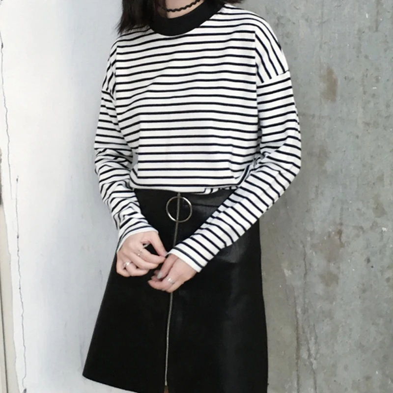 Весна 2022, женская футболка, модная одежда, женская футболка с круглым вырезом, повседневный черный и белый топ с длинным рукавом в полоску для женщин