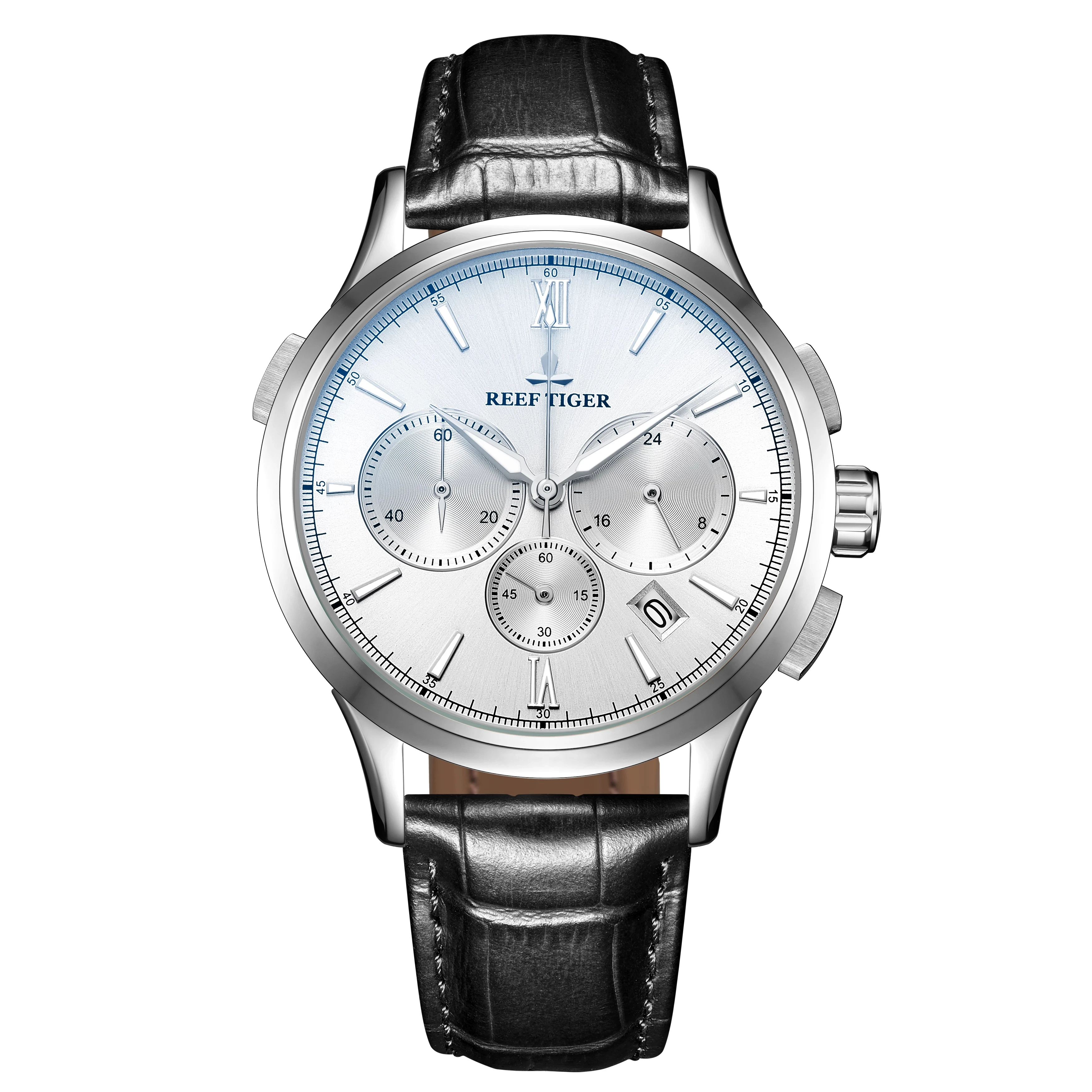 Риф ТигрRT 2021 класса люкс хронограф многофункциональные кварцевые Для мужчин часы, кожаный ремешок, белый циферблат световой Дата Сталь часы