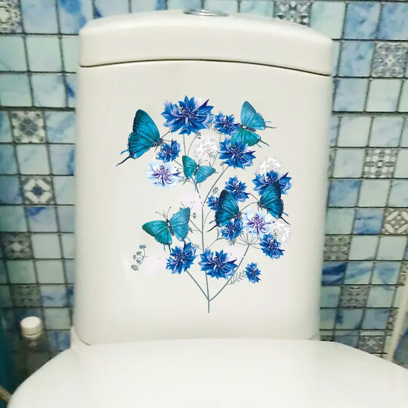ZTTZDY 19,4 23,4 см голубая бабочка фон для детской комнаты наклейки на стену Творческий Туалет украшения T2-1276