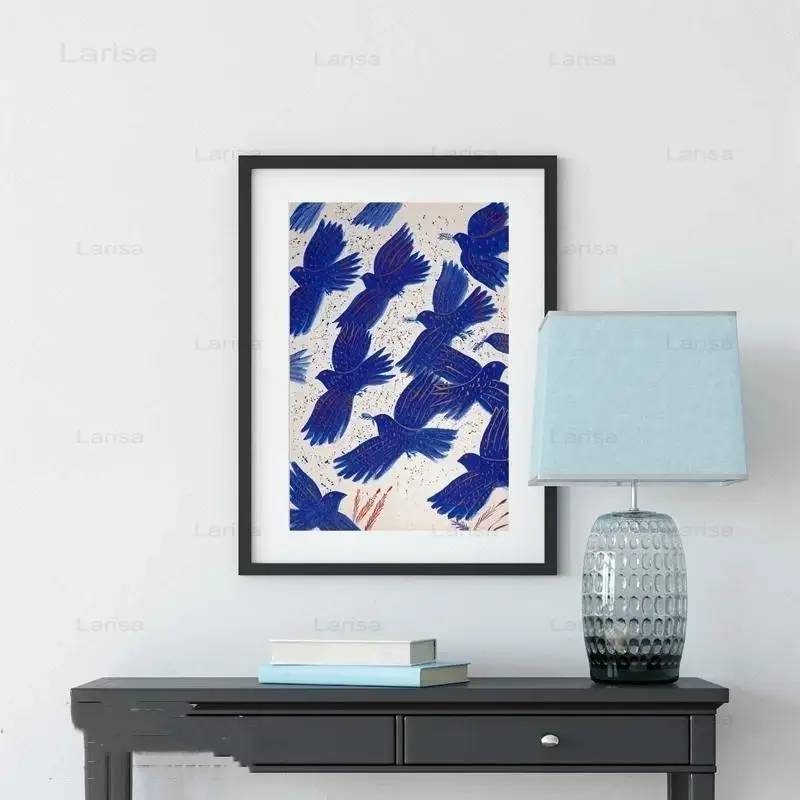 Настенная картина с голубыми птицами, абстрактный постер и принты, Скандинавская эстетическая картина для гостиной, домашний декор