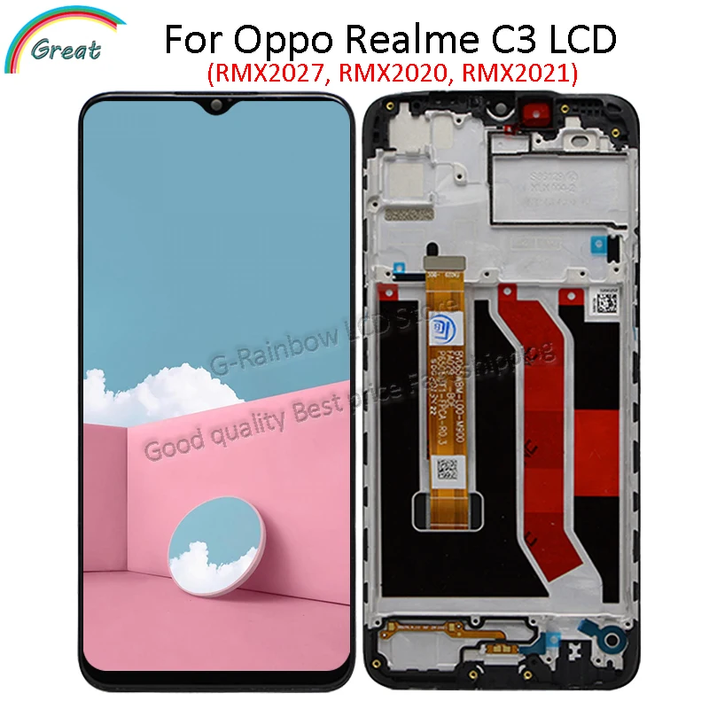 Дисплей 6,5 дюйма для Realme C3, ЖК-дисплей с рамкой, сенсорная панель, дигитайзер для OPPO Realme C3