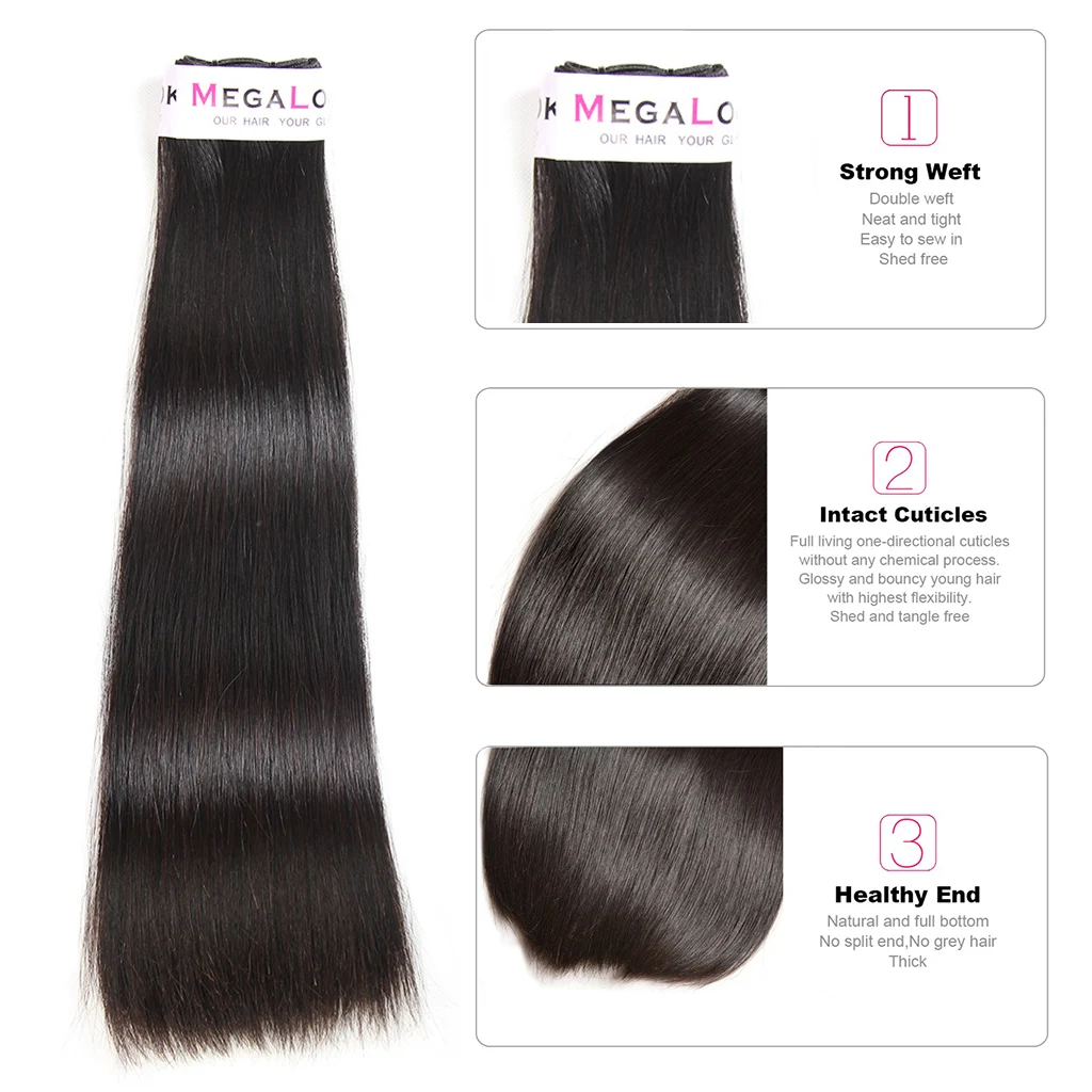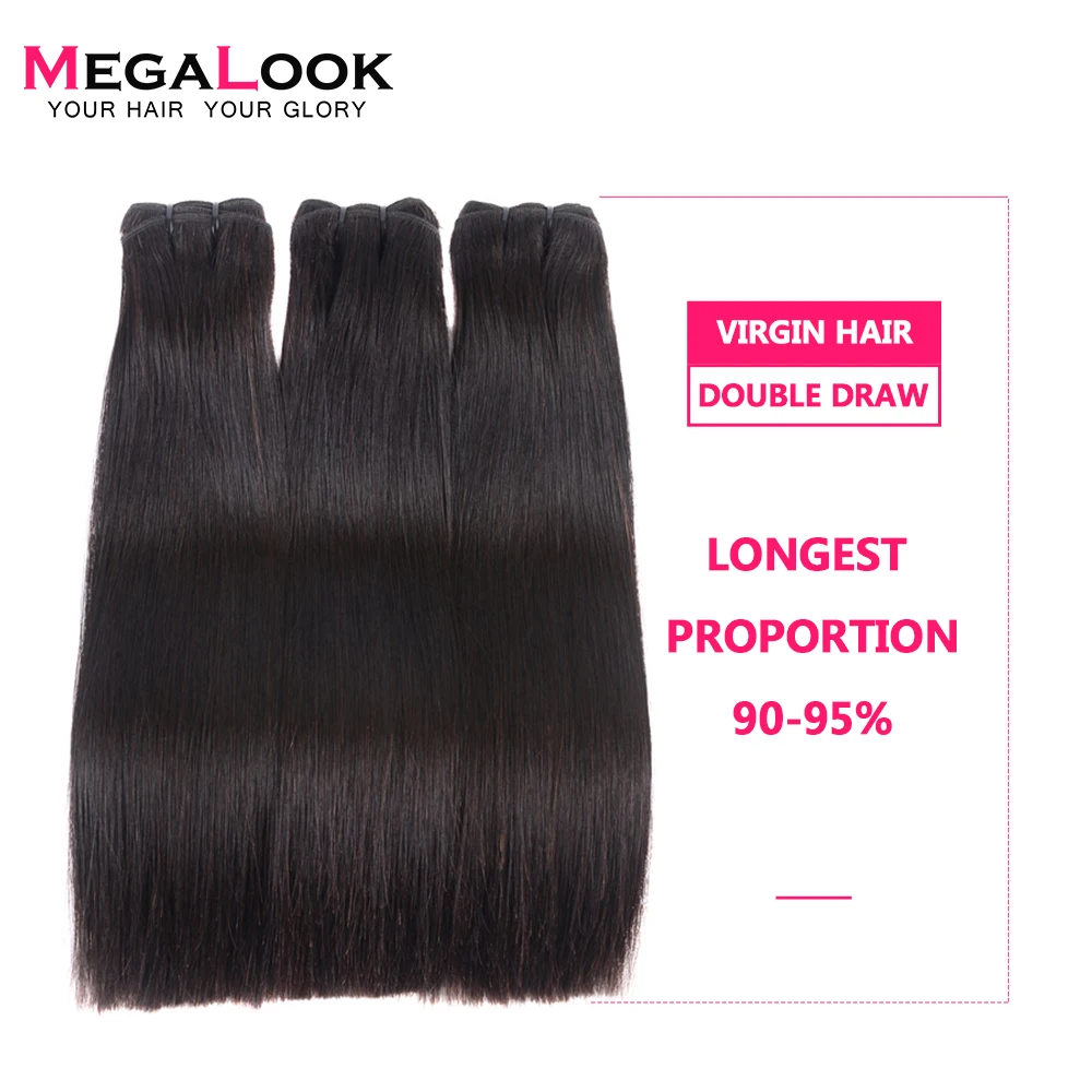 Двойные вытянутые волосы девственницы пряди Megalook до самых светлых тонов, прямые накладные волосы на заколке для черный Для женщин 100% натуральные кудрявые пучки волос пряди 3 предмета в комплекте