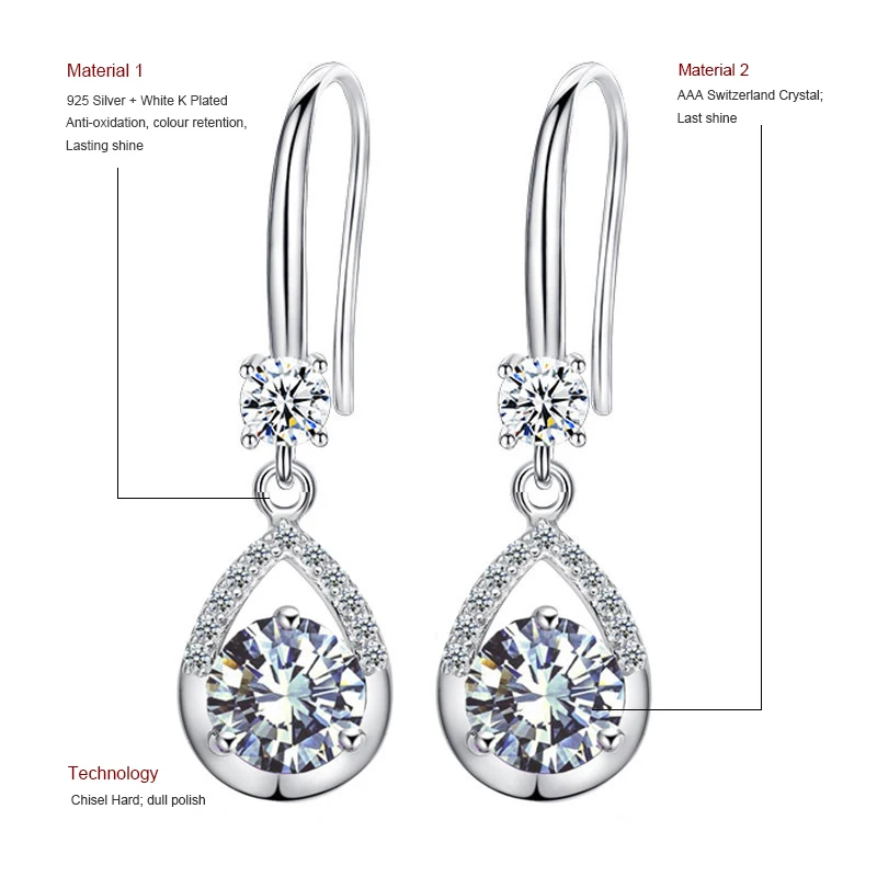 Женские серьги-капельки из стерлингового серебра 925 пробы, Элегантные благородные изысканные серьги с цирконием, подарок для девушки и женщины 1Y1099