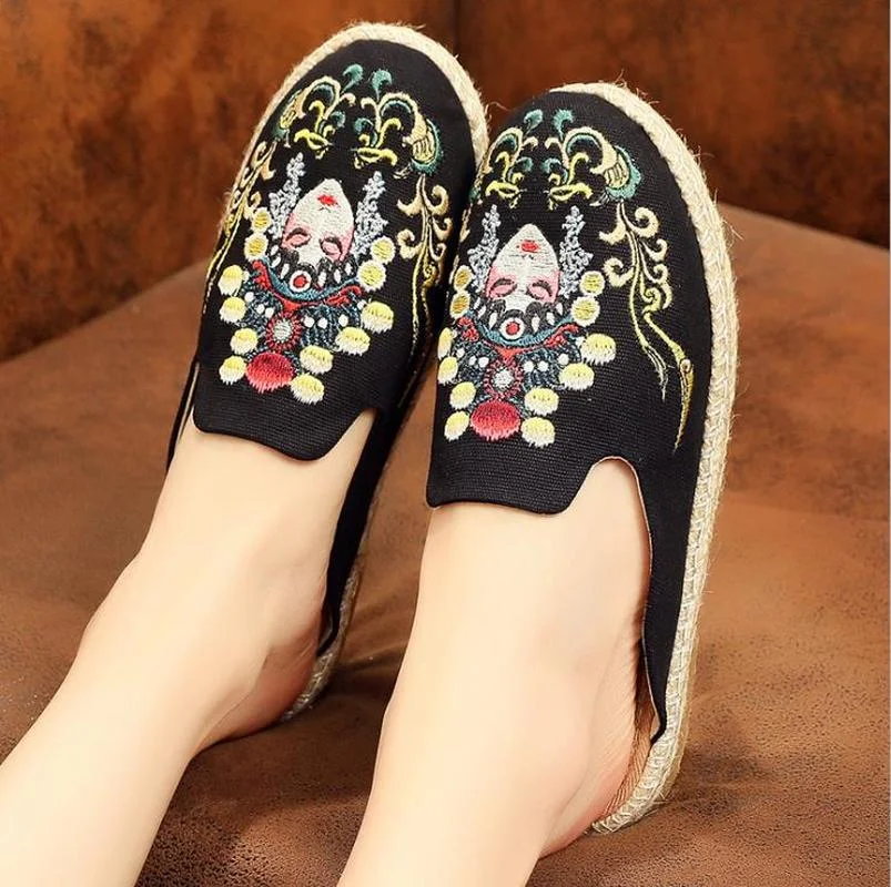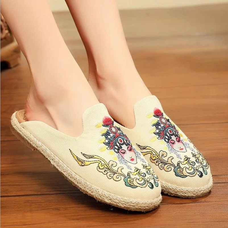 Женские парусиновые эспадрильи, с цветочной вышивкой, на плоской подошве, богемные, в стиле ретро, удобные, с закрытым носком, летние