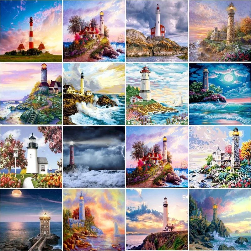 GATYZTORY Sea Landscape DIY масляная краска по номерам набор акрило...