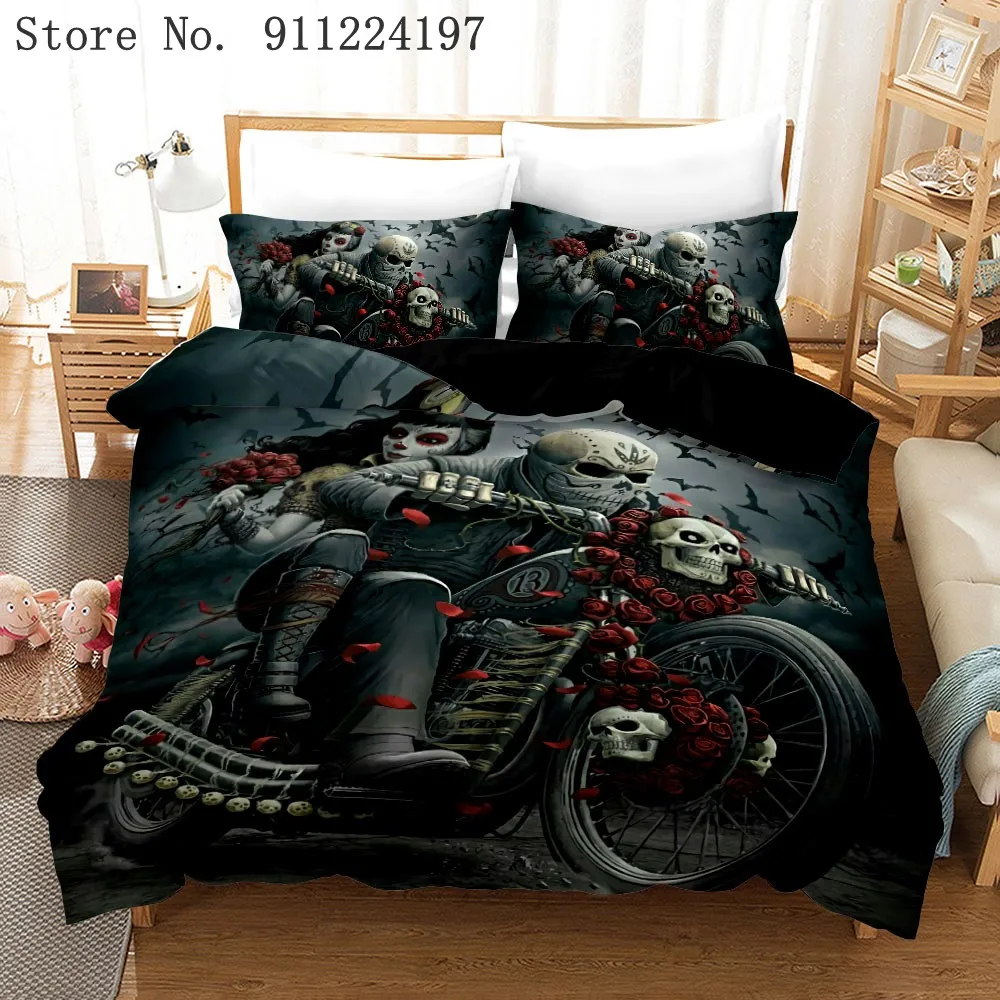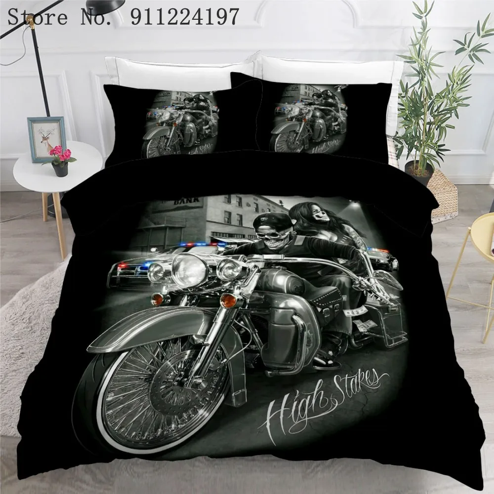 Мотоцикл красота череп набор пододеяльников черный комплект постельного белья взрослые покрывала одеяла 2/3 шт комплект постельного белья одеяло покрывало постельное белье