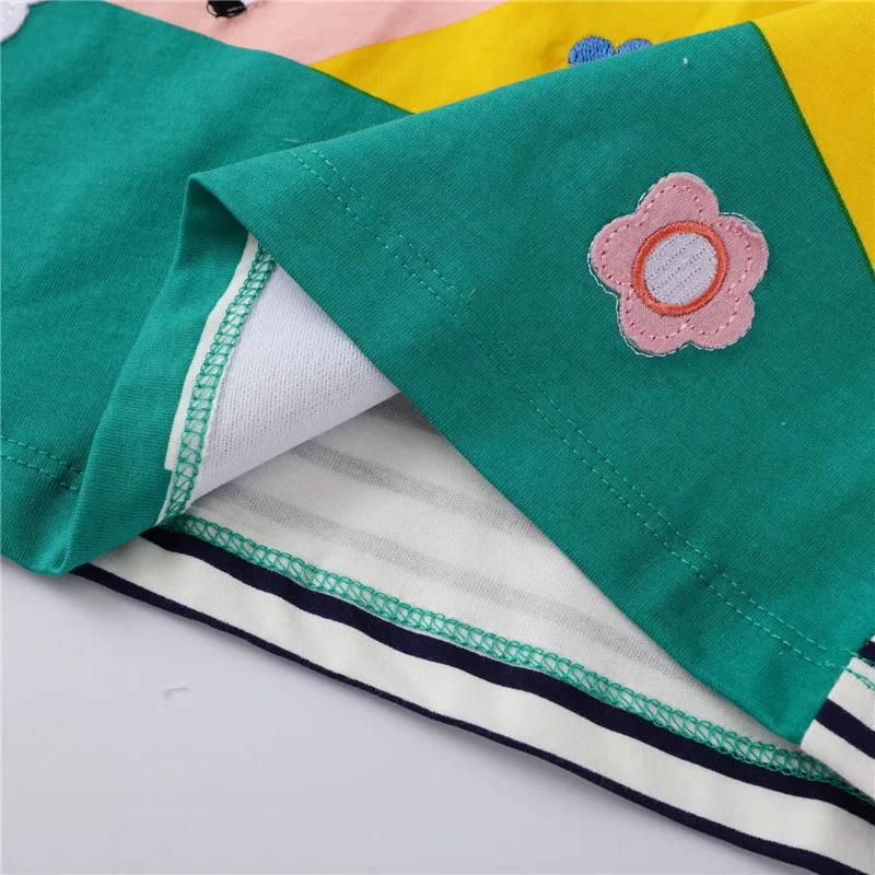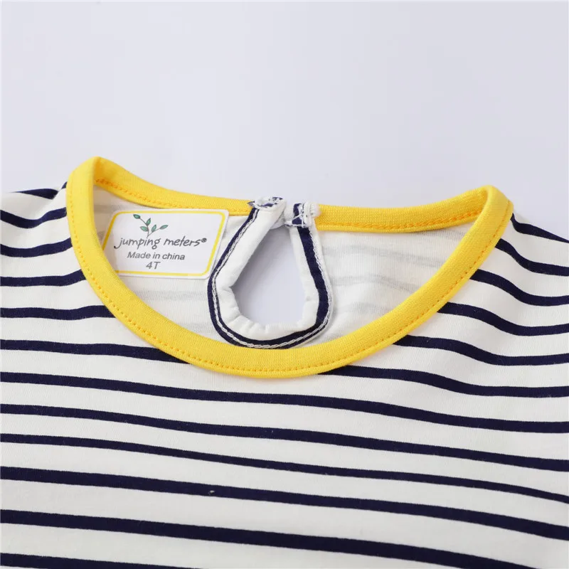 Детское хлопковое платье принцессы, в полоску, с вышивкой животного