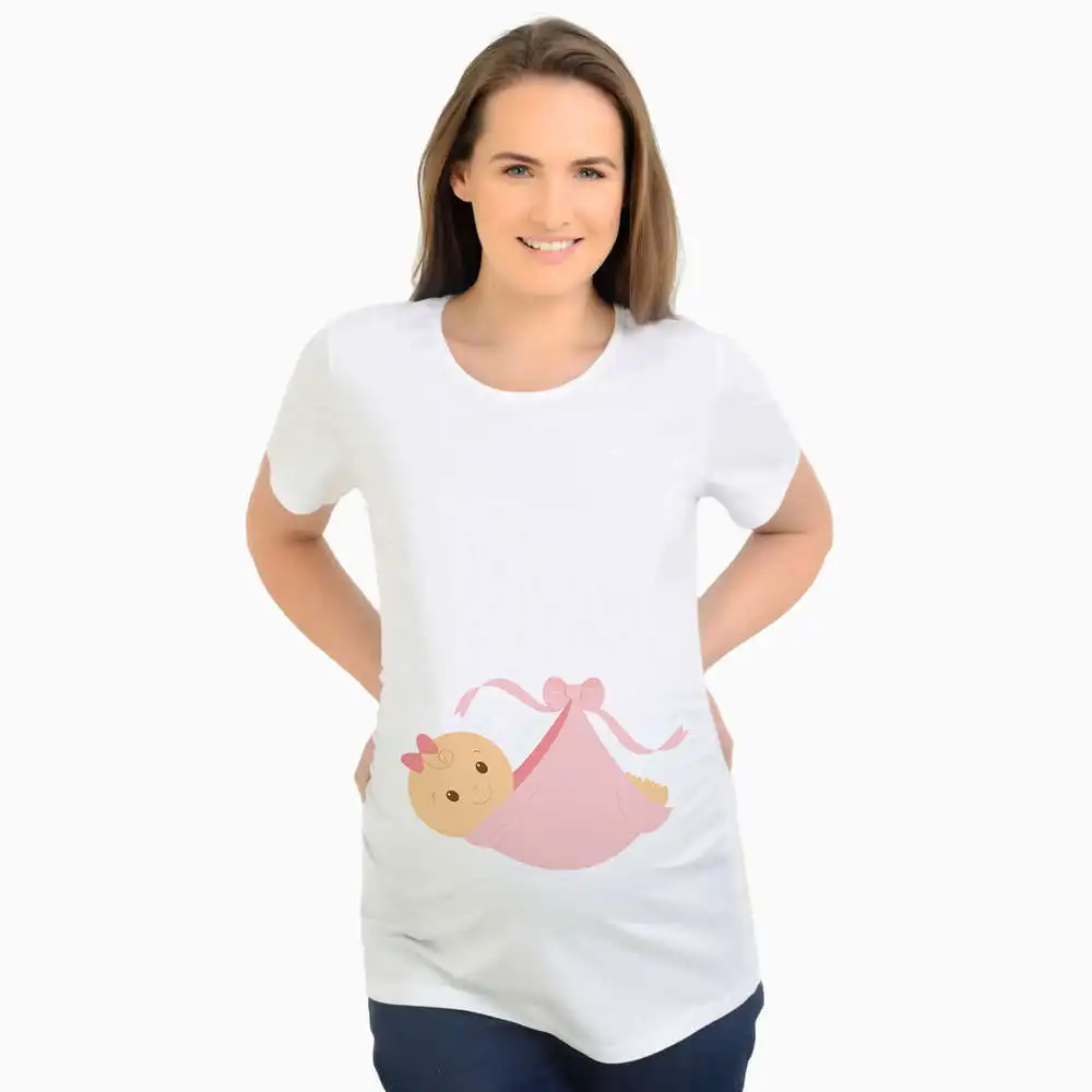 Топы для беременных женщин с коротким рукавом Футболка для беременных с принтом для маленьких девочек Забавные футболки для беременных