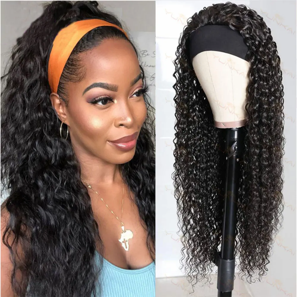 Черный глубокая волна повязка на голову парик синтетические парики с челкой для черный Для женщин фабричного производства синтетический парик с головной повязкой с длинными волосами высокого Температура волокна