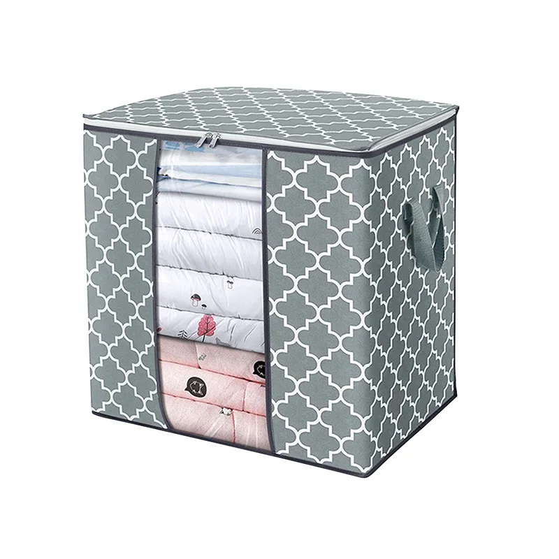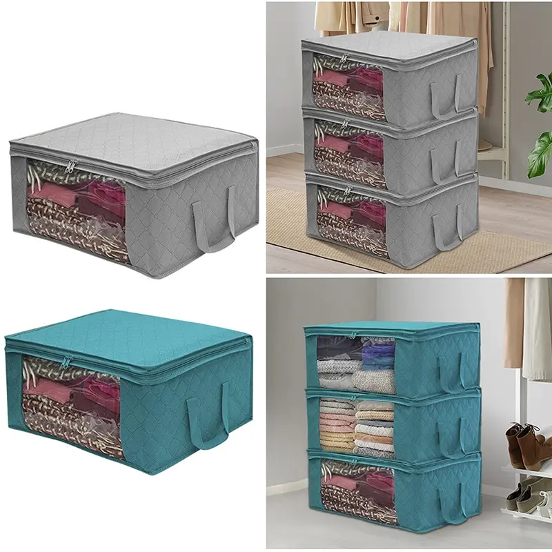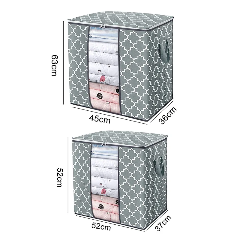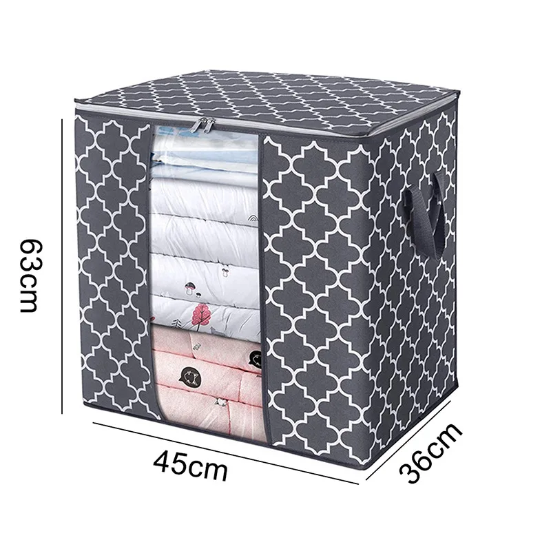 Характеристика:-- Нанесение высококачественного нетканого материала, прочный для длительного использования.-Поставляется с гладкой 2-сторонняя молния для открытия и закрытия, более удобный для вынимания товара или хранения товара внутри.-Дизайн прозрачного окна позволяет вам поймать то, что находится внутри, попрощайтесь с поиском предметов в беспорядке.-- Ручка: легко носить с ручками с обеих сторон, позволяет перемещать его в любом месте для использования.Легко чистить, вы можете просто очистить поверхность наполовину влажной тканью.-Большая емкость, подходит для хранения одежды, одеял, игрушек, фотографий, детской одежды и т. д.