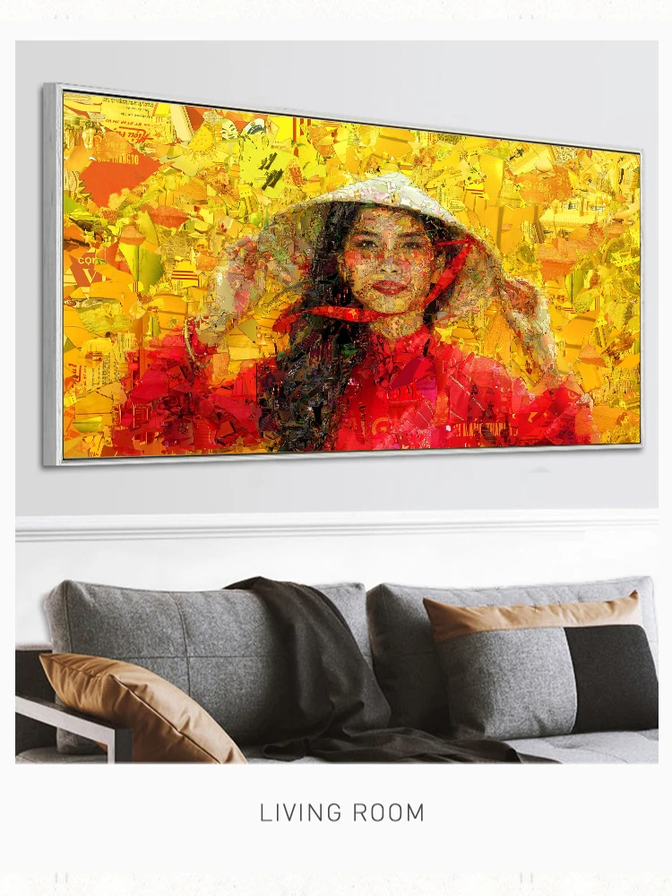Вьетнамские девушки мозаичный портрет живопись масляными красками Современная живопись напечатаны на холсте Wall Art Печать плакатов для Декор в гостиную без рамки