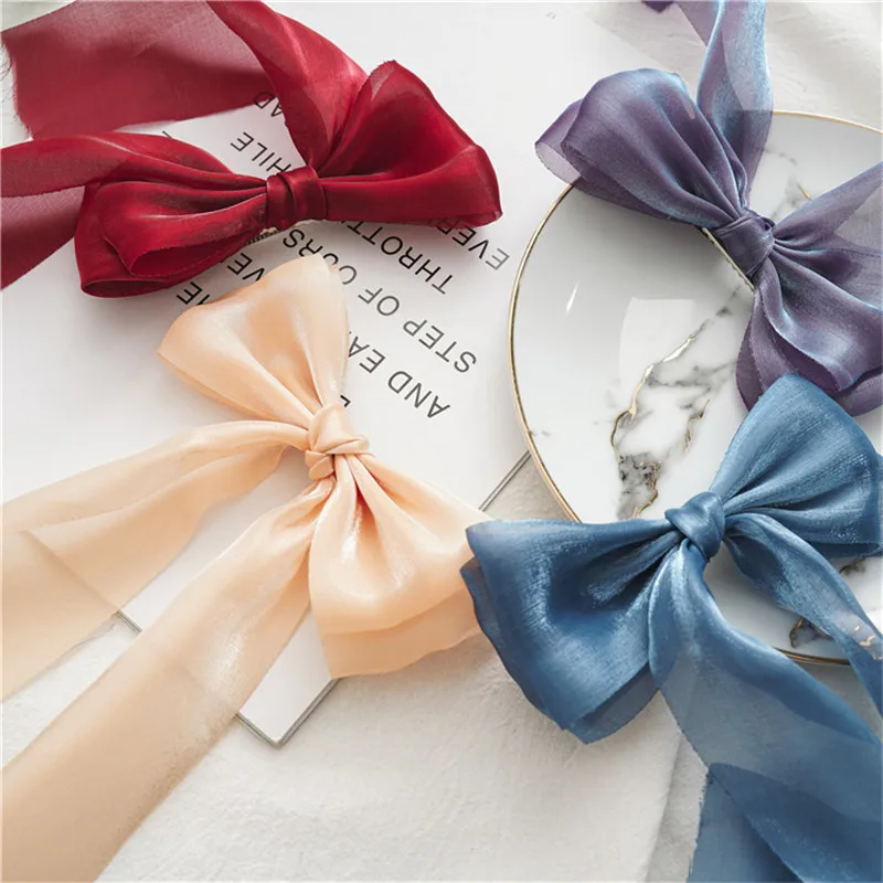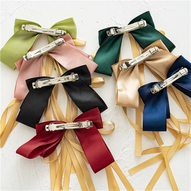 Женские атласные заколки для волос, 1 шт., с большим бантом из ленты
