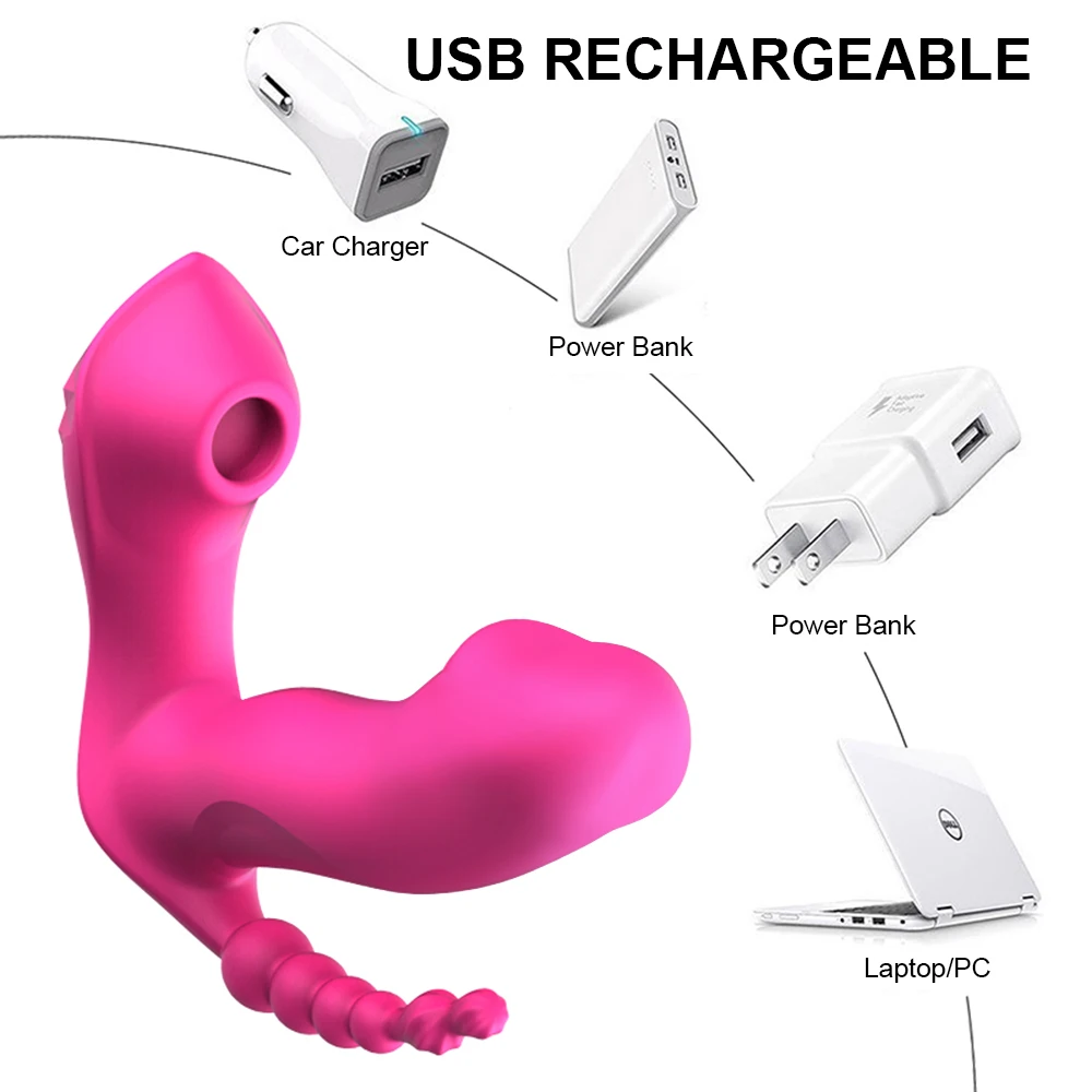 3 в 1 сосающий вибратор 7 режимов Вибрирующая присоска анальный стимулятор влагалища клитор носимый оральный всасывающий эротический интимные игрушки для женщин